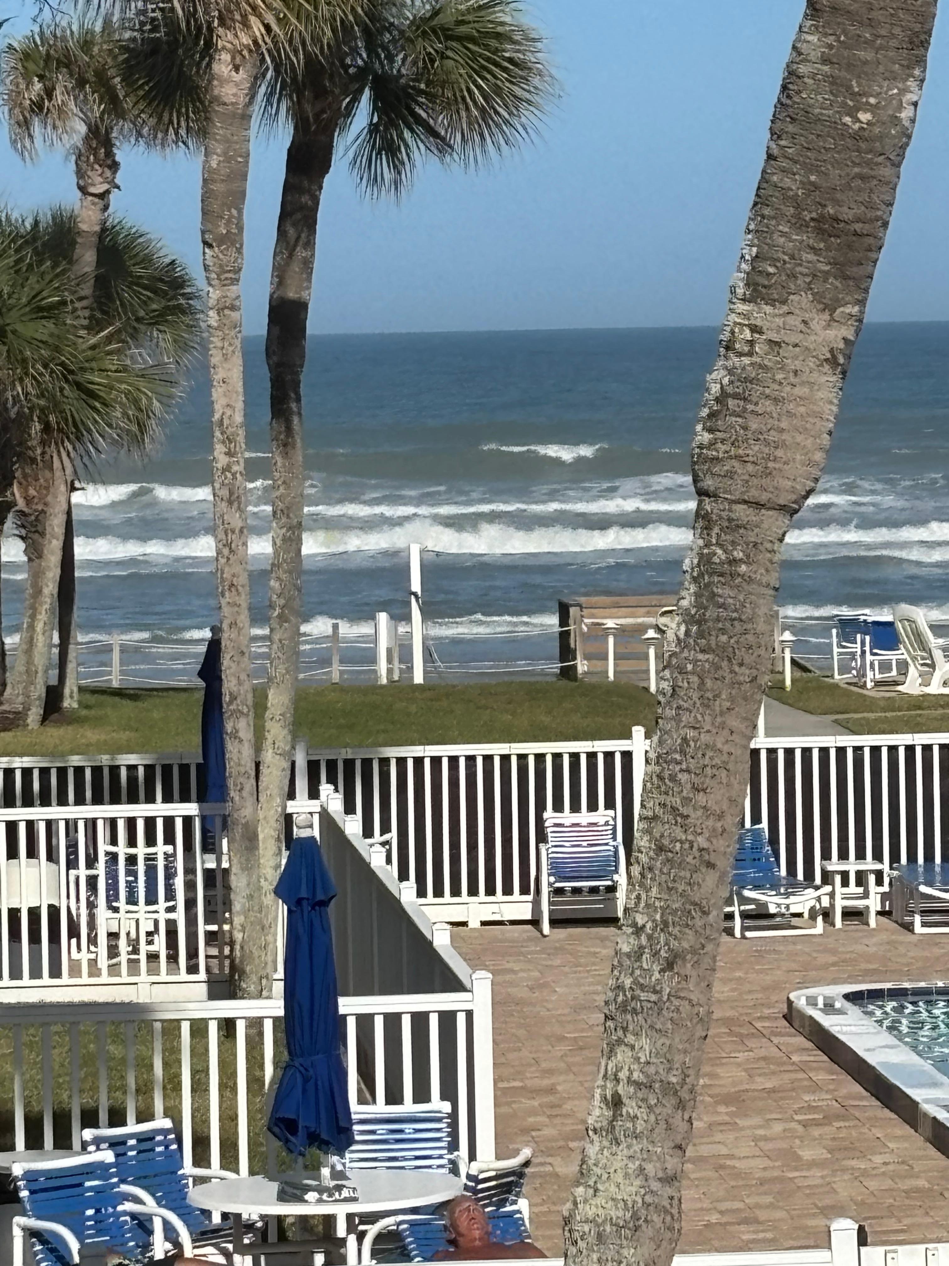 This complex is in a very convenient location on the non-driving side of NSB. The closest NSB public accesses are a little farther to the north and south, so this particular stretch of beach is not nearly as crowded as our adjacent neighboring complexes. The pool on our side of the complex is heated so it remains comfortable temperature all year. Our particular unit is in a great location because guest parking/2nd vehicle parking is right near the unit's covered spot which is directly at the bottom of our stairs. Also it is a much shorter walk to take out the trash than other units on the property. We love this convenience. The way our unit is positioned, there are no units adjacent to us on the north. Also our kitchen window by the sink, and guest bedroom windows face west and we have seen some spectacular sunsets and colors from this vantage point.