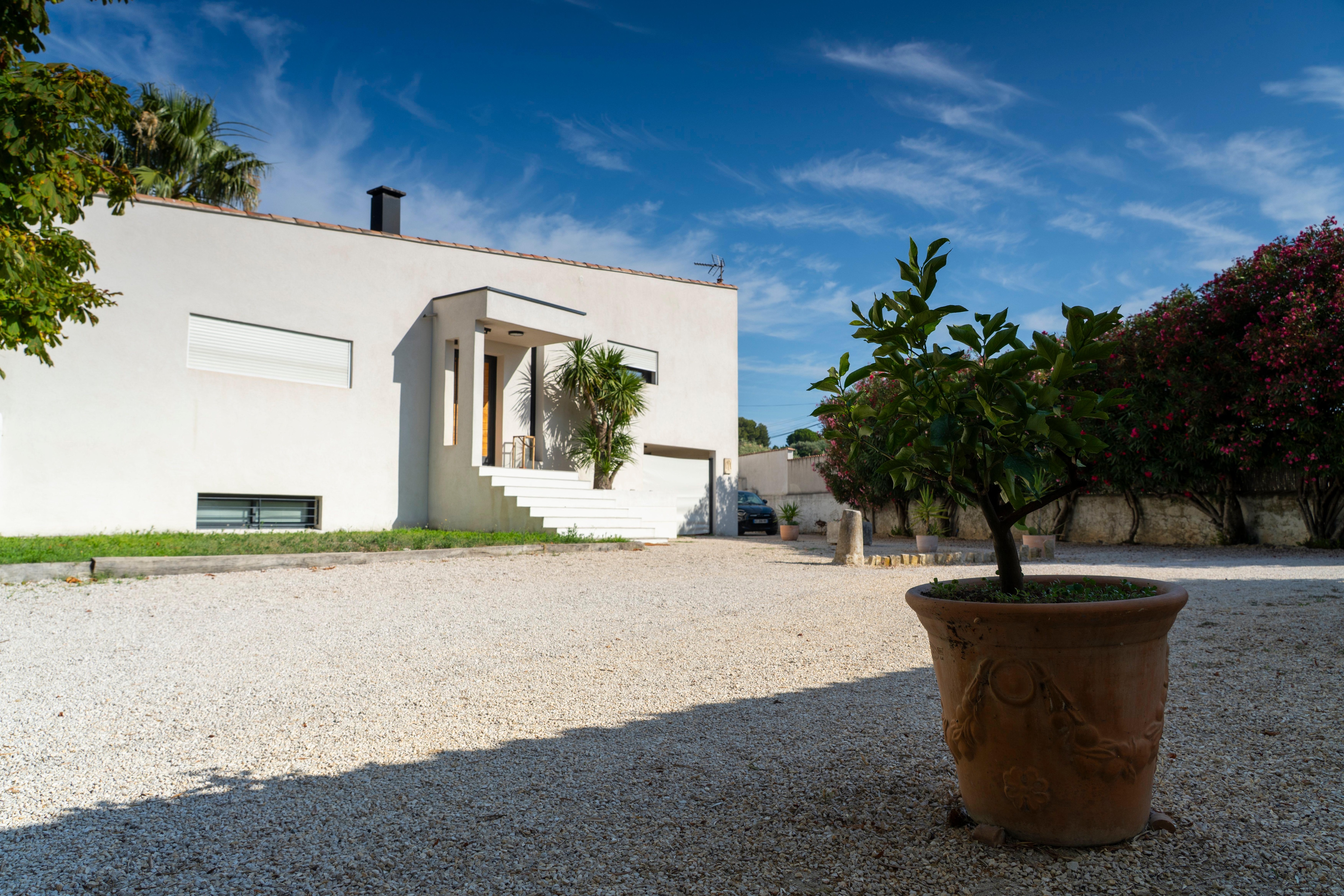 This architect's villa of 130m2, recent, is located on a vast garden of 3000 m2, closed and raised, in a residential area.