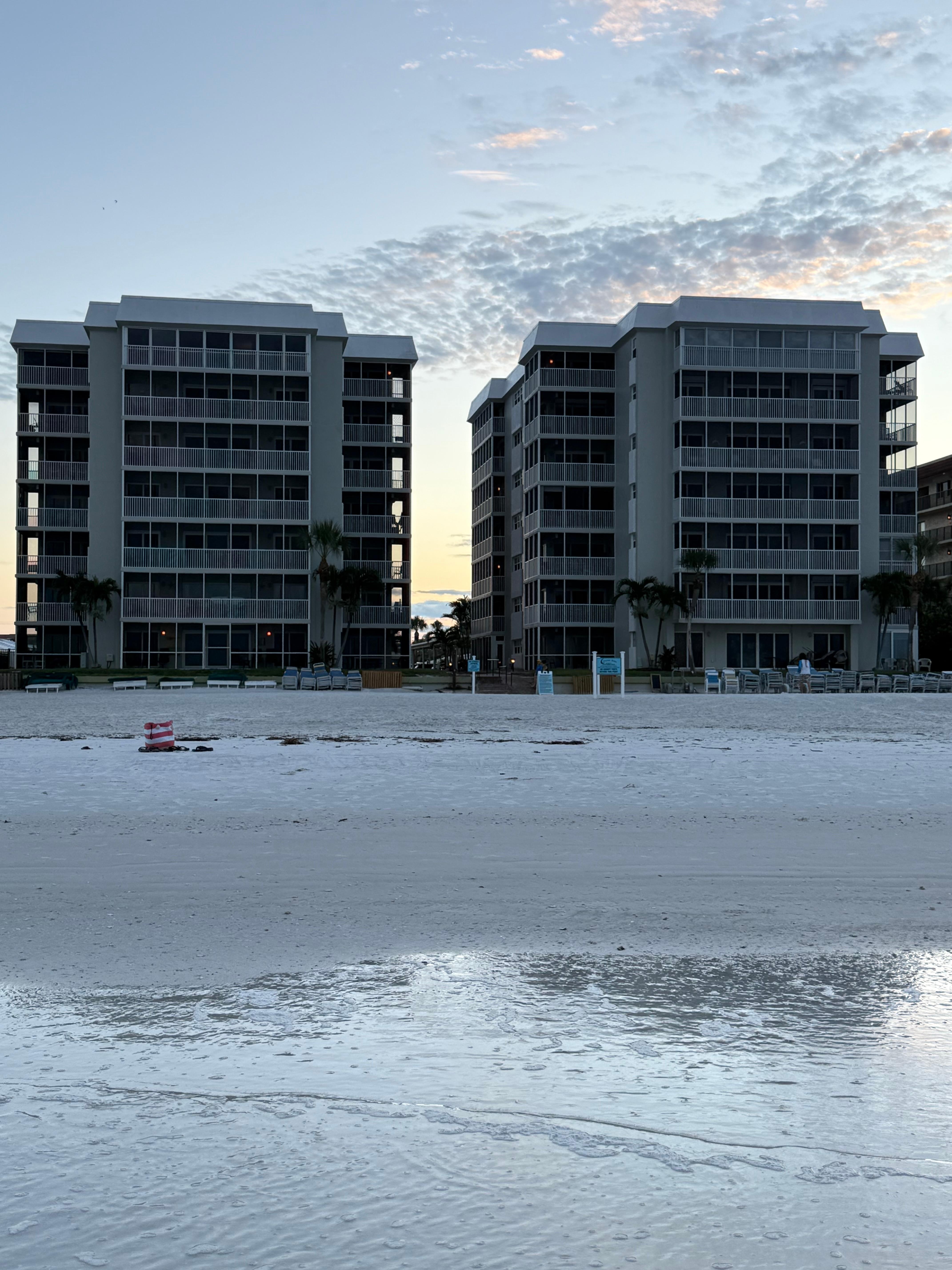 Amazing direct Gulf view from this 4th floor front corner condo. Crescent Arms is a quiet, beach front, high rise condominium building that is ideally located for maximum fun and relaxation. We are right on the beach with lounge chairs provided. As close as you can get to the Gulf without being in the water! We can comfortably accommodate 6 people. There are 2 double beds in one room and 1 King in the other.