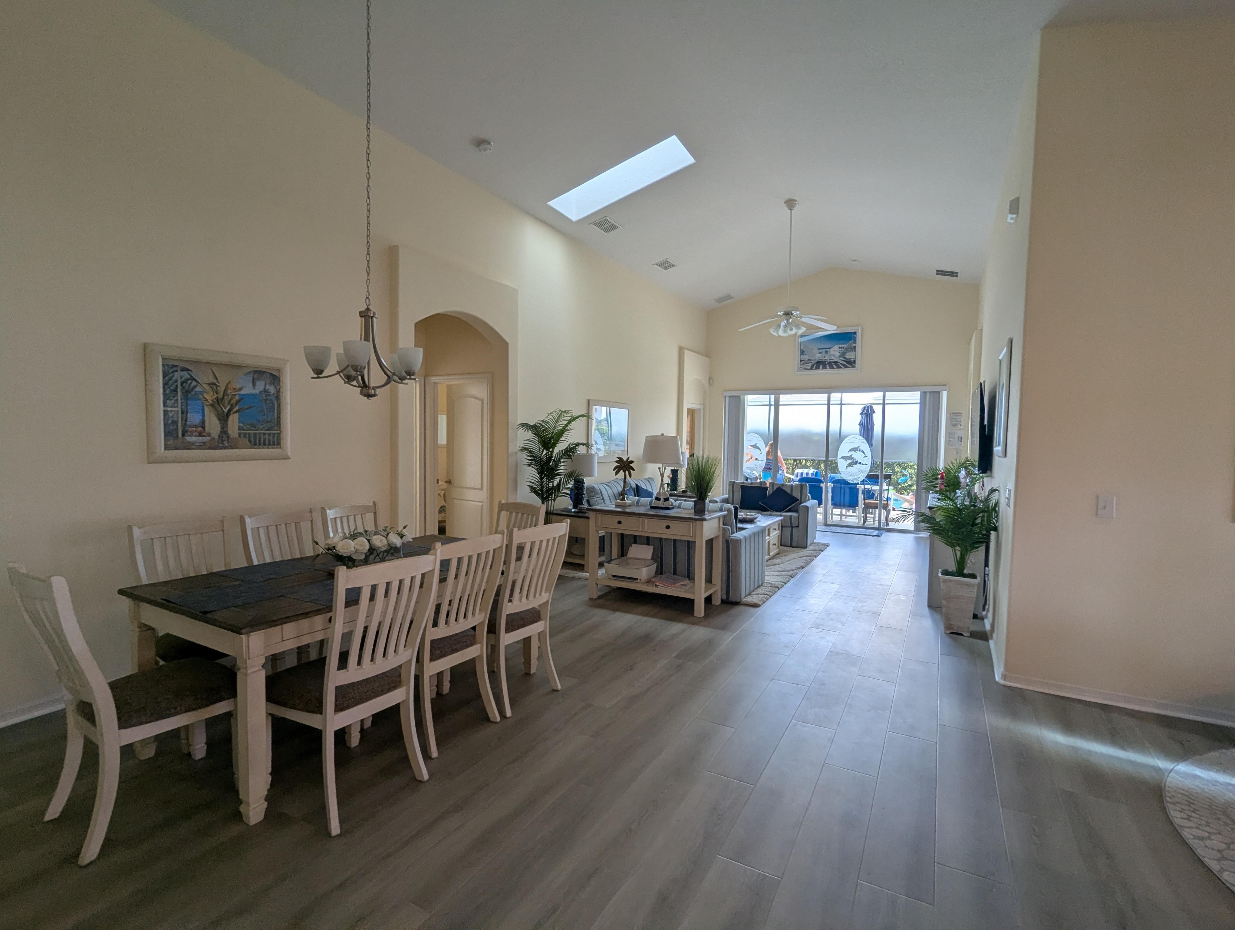 When you first walk into the house you are surprised how big the house actually is. New carpeting, mattresses and TVs. Very well supplied with towels, bedding, etc. The pool temp when we arrived was perfect. We couldn’t have asked for anything more. The owner, Rick, was always quick to answer any questions. We hope to be back next year.