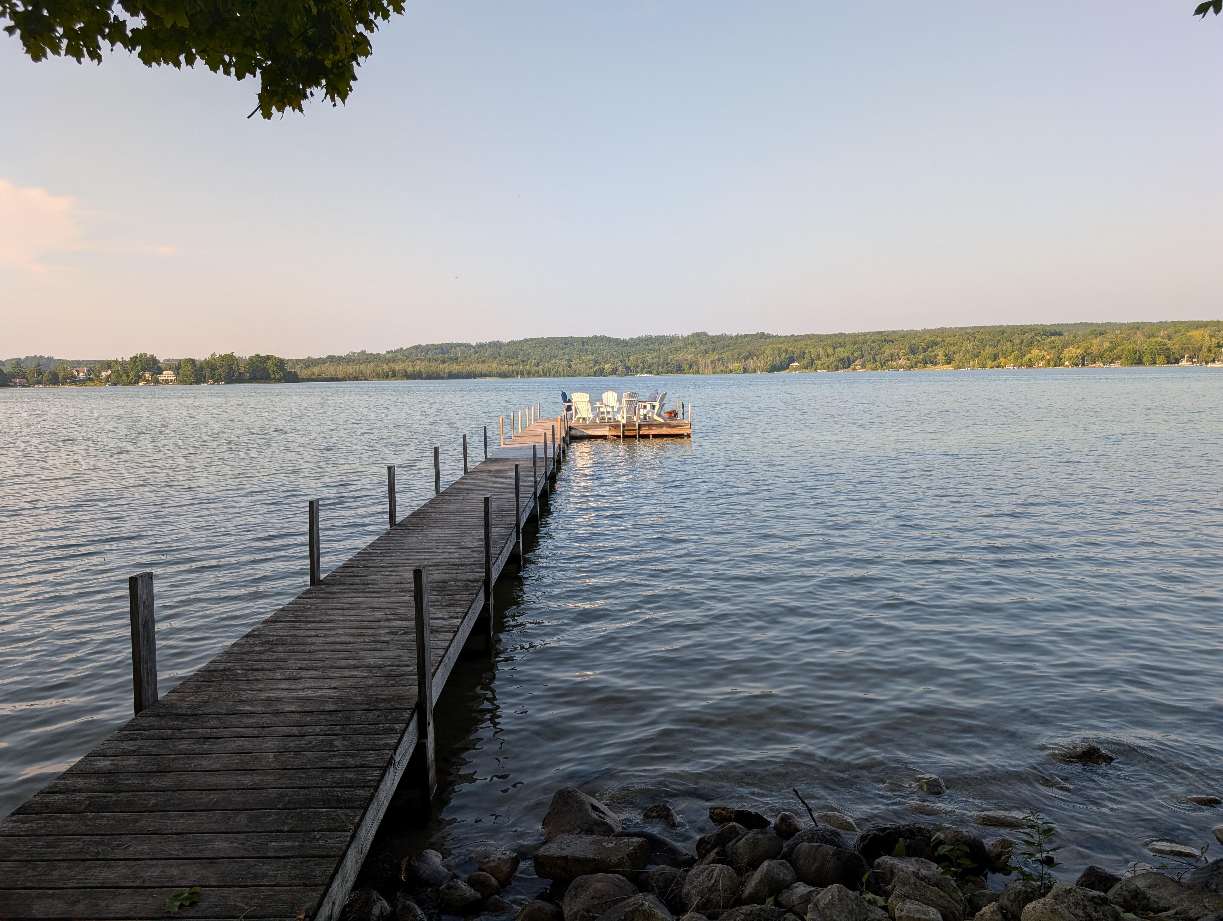 Best of lake vacations! Pretty, lakeshore Walloon Lake Cottage on the North Arm, conveniently located 10 minutes from Petoskey, Bay Harbor and Walloon Lake Village. Three bedrooms and two bathrooms (one full bath and one shower). The two upstairs bedrooms have mini-split a/c, main floor does not have a/c but has ceiling fans. Cottage newly furnished with modern and comfortable furnishings. Includes well-stocked kitchen, new gas grill, fire pit and lake-side picnic area. 256 square foot private dock with large area for sunbathing and docking 2 boats. Large front and back yards for playing. Open floor plan with living, dining and updated kitchen including gas stove, microwave and dishwasher. Beautiful hiking trails behind cottage. The cottage sleeps 8, but that would be 4 adults and 4 kids as one of the bedrooms has a full bed, a twin bed and two trundle beds. The comfortable maximum for just adults would be 6 adults.