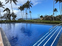 Beautifully renovated and decorated, over 1,300 square feet, perfect for two - four adults or a small family. This is a premier end unit offering maximum privacy for your vacation. It is fully air-conditioned with three split a/c units. Enjoy your favorite beverage while viewing the spectacular ocean-view sunset from the upstairs lanai. The well-stocked kitchen and outdoor grills allow you to have meals at home, dining outdoors on the main level lanai or in the dining room using the unique hand carved monkey-pod table. The Hawaiian décor and art, some by local artists, provides island ambiance.