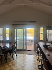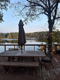 - Back Deck: Off the kitchen is a large deck that overlooks the lake. On the deck is an outdoor table for 6-8 people and a gas grill.