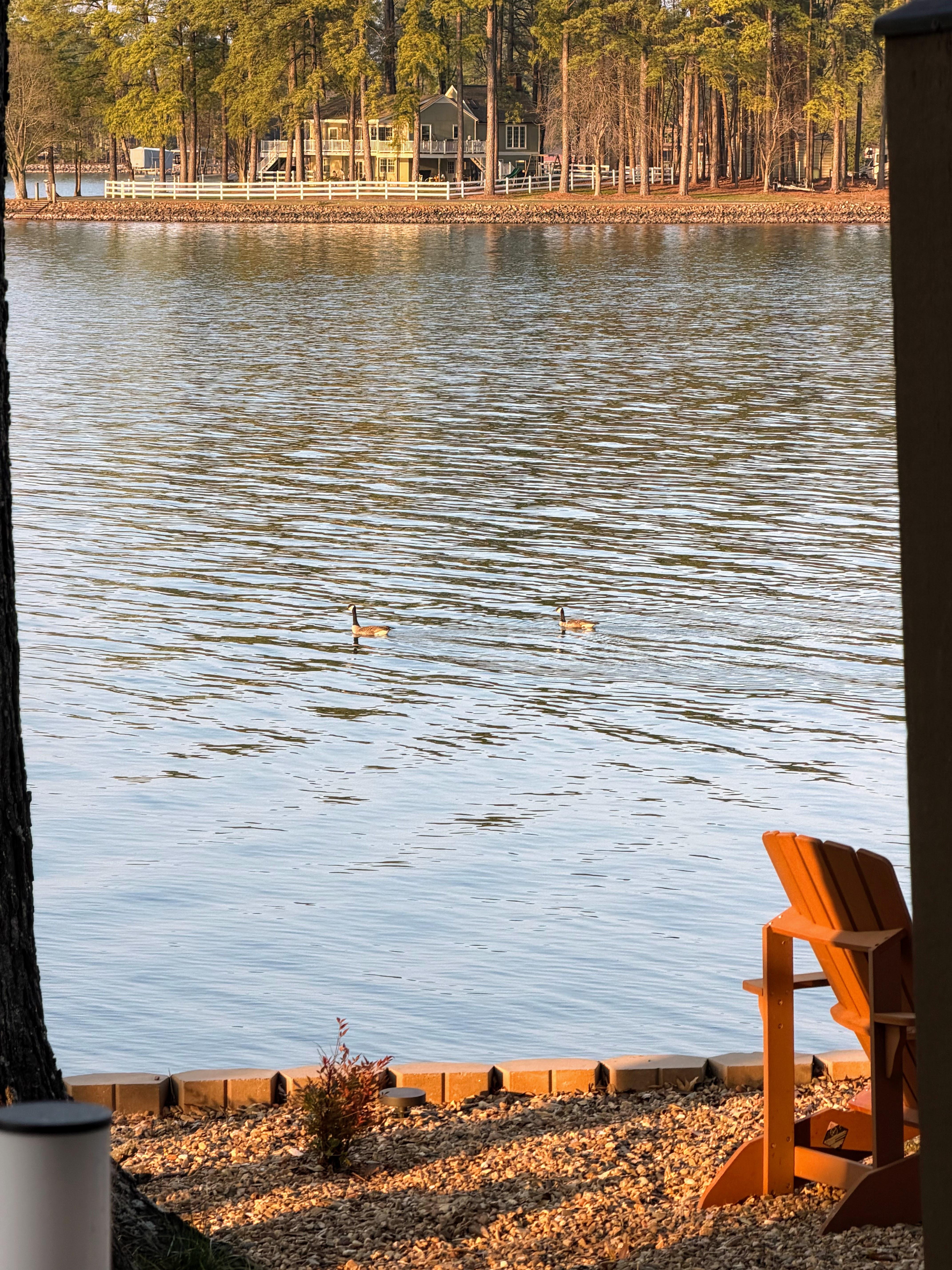 The lake views were beautiful! The apartment was very nice and had lake views from every room. Good places to sit and enjoy the view around the home including patio and fire pit area. We enjoyed meals at restaurants within driving distance. We hope to go back in the summer!
