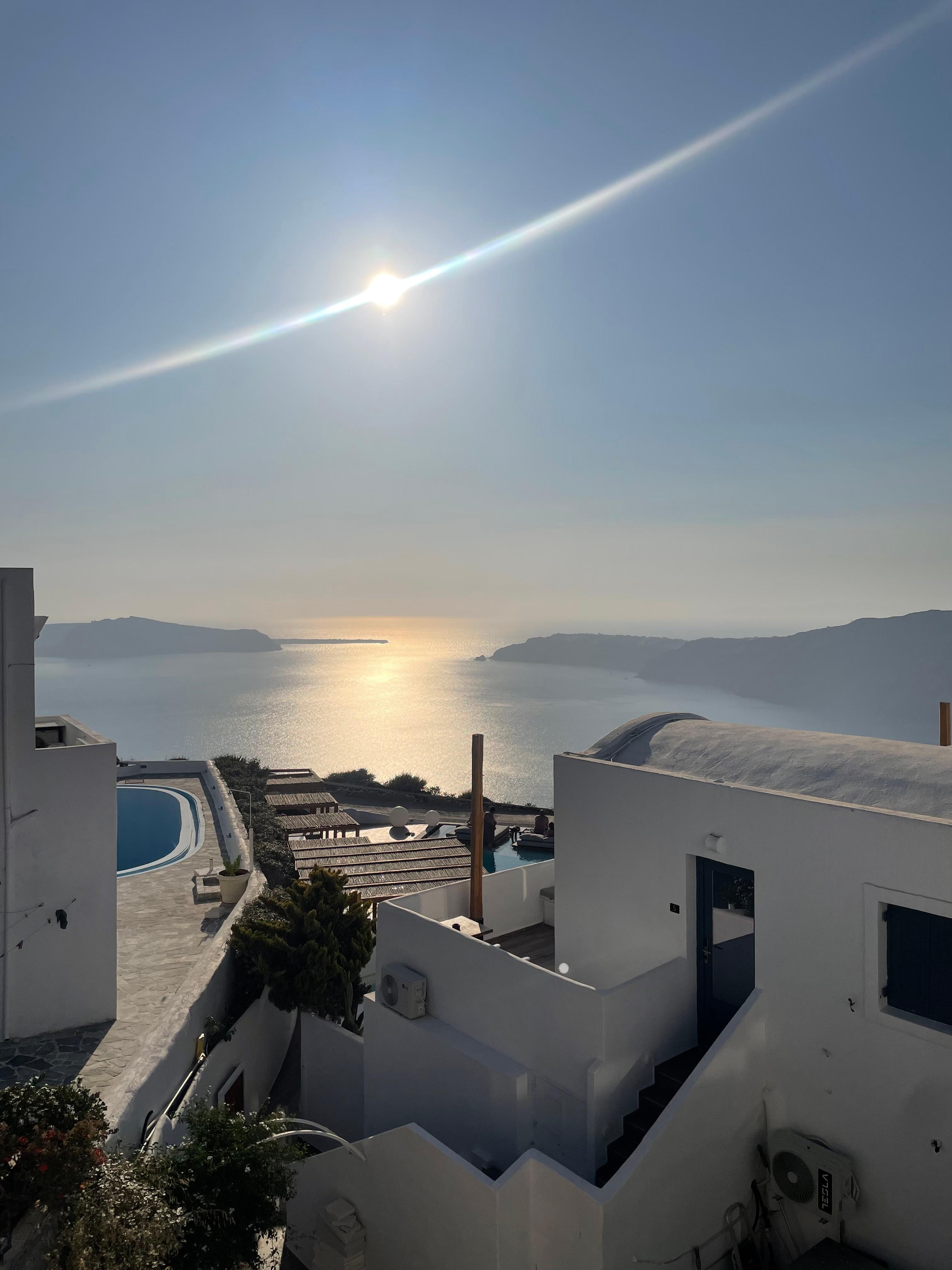 The location is about 15 minutes walk from the village of Imerovigli, where you can find many restaurants and bars or have a walk and get great pictures. The main walking path that connects Fira town to Oia village passes right down the Villa so you can use it to get to Imerovigli as well. If you don't feel like walking, a bus stop is located right outside the property where you can get the bus to Fira town, Imerovigli or Oia.