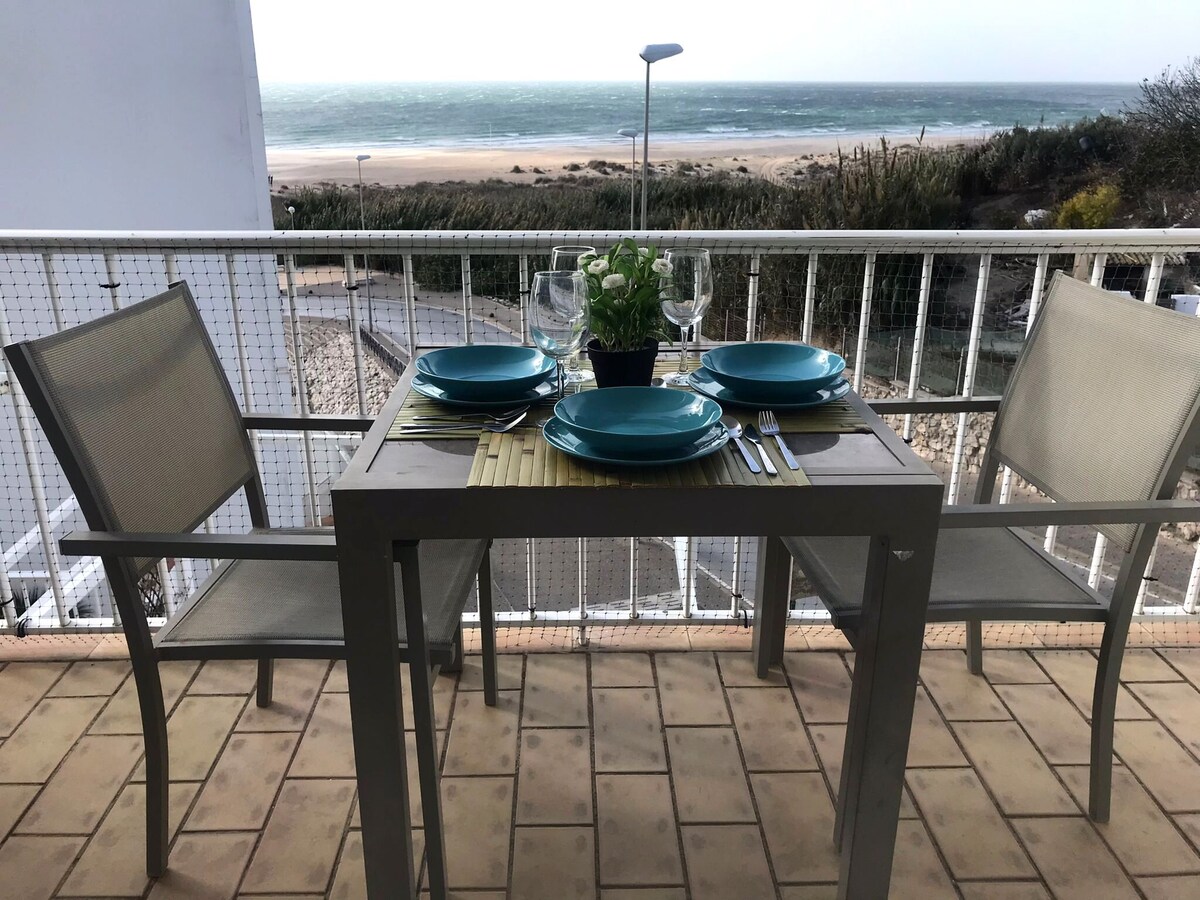 1st line beach, large terrace facing the sea, free WIFI