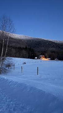At the base of Mount Hunger. Access to state hiking trails out your front door. Unbelievable western mountain views from Camels Hump to Mount Mansfield. Large open yard, with unbelievable sunsets when mother nature decides to put on a show.. Close to both the nightlife of Stowe and Waterbury but also in a pristine mountain environment. Do not be surprised if you see deer, bear, and various other Vermont wildlife.