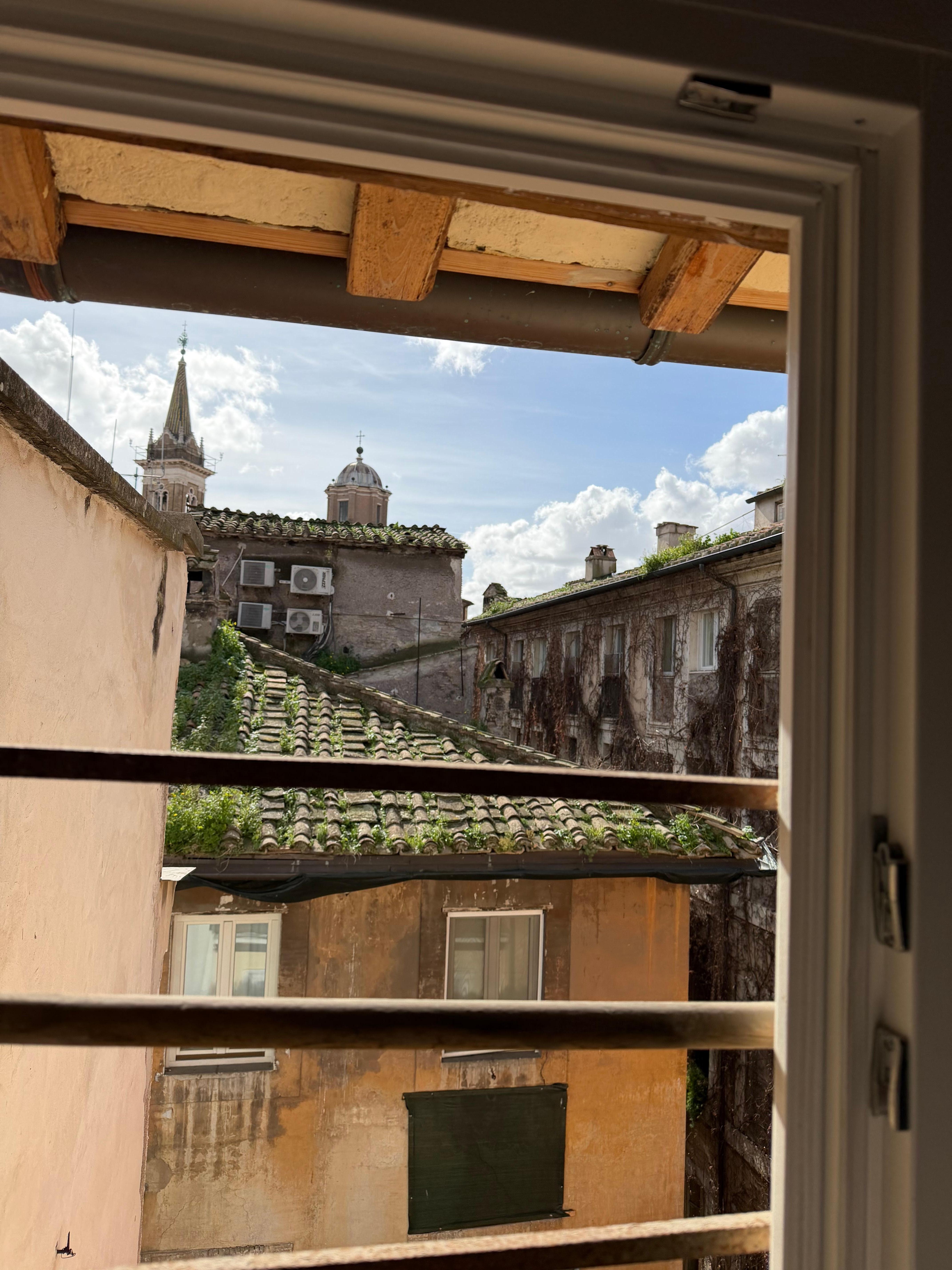 The apartment is located on the 2nd floor without lift of an ancient building in the historic center and consists of a dining area with table and chairs and a splendid and modern kitchen equipped with all supplies, followed by a double bedroom and a bathroom. with shower. On the second level, accessible via an internal staircase, we find a room that can be used as a TV room and living room or bedroom with a high quality double sofa bed, this floor is completed by a comfortable service bathroom. From the windows it is possible to enjoy the magnificent view over the rooftops of Rome.