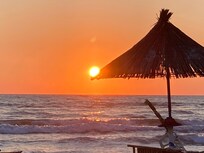 All in all it was a very nice stay there. Checking in was most uncomplicated, we arrived at the resort and at the entrance they phoned someone who brought us to our apartment and gave us the key. For checking out we just left the key on a table in the apartment. The apartment itself was very nice, too. Bright, cozy, 2 bathrooms, 2 sleepingrooms, a fully functioning kitchen and a nice balcony. We were on ground floor, the balcony was protected by evergreens, so we had our privacy even though it faced the street that led to the laundry of the resort. If only people would switch off their engines while bringing laundry to or getting it from there. It was very good to have a washing machine on our own, too. A little shop was around the corner and had everything you need for daily life. Fruit and vegetables can also be bought from street vendors. Black tea in bags isn’t something that is easy to come by though. Albanians drink coffee. The way to the beach was well in walking distance (5 min) and the beach itself was a nice sandy beach. We didn’t rent a lounger there but just put our stuff on the sand and enjoyed the sea and its wonderful waves. The kids spent hours in the water. If only people would put their trash in the bins. The resort itself was relatively tidy but once you leave it, it’s everywhere. The one thing I was a bit disappointed about was the price of 8,- per day and person for the use of the swimming pool. I was a bit fooled by the pictures of it here.