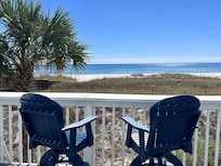 Three bedrooms are on the upstairs level, the master has a king Tempur-Pedic mattress, a large private bath including a tiled shower with frameless glass enclosure and a large vanity with marble countertop and drawer storage. A cozy bay window with sitting area has a panoramic view of the gulf and has a comfy chair and ottoman perfect for relaxing and reading on a day you may not want to be on the beach. A queen bed (Tempur Pedic mattress) occupies the second bedroom. There is also a nice dressing table/vanity to give that bedroom a space in which to sit for applying makeup or drying your hair. The third bedroom has two XL twin beds with the same 5-star Marriott mattresses. These 2 bedrooms share a nice hall bath with a tiled shower, frameless glass enclosure and hand held shower head. In addition, both full bathrooms are provided with bar soap and hairdryers are also furnished.