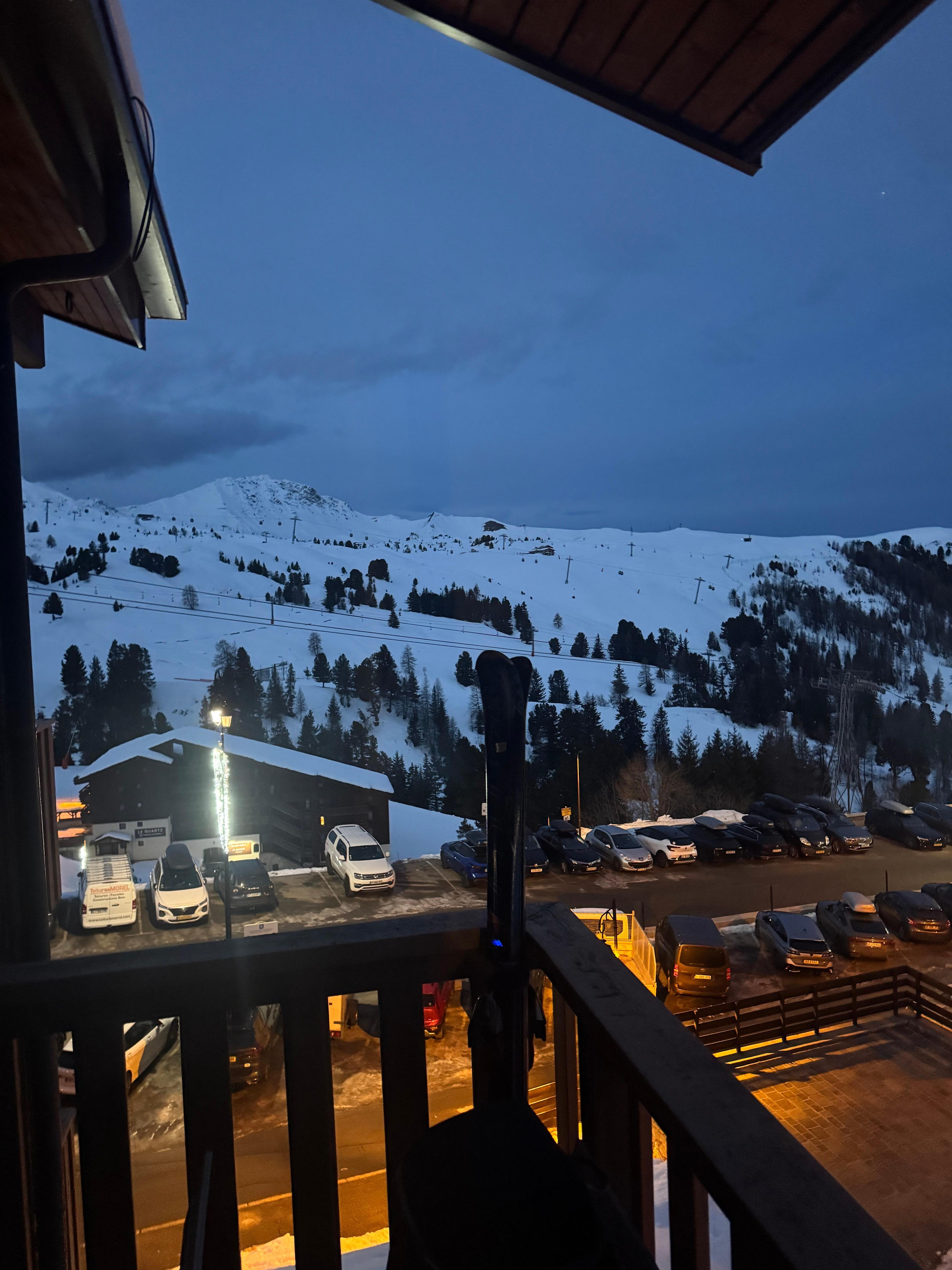 Apartment: Orientation SOUTH WEST with balcony and views of the valley, 20 meters from the lifts, bowling, fitness center, ski school and creche different shops. You put the car in the beginning of the stay and resume at end of stay.