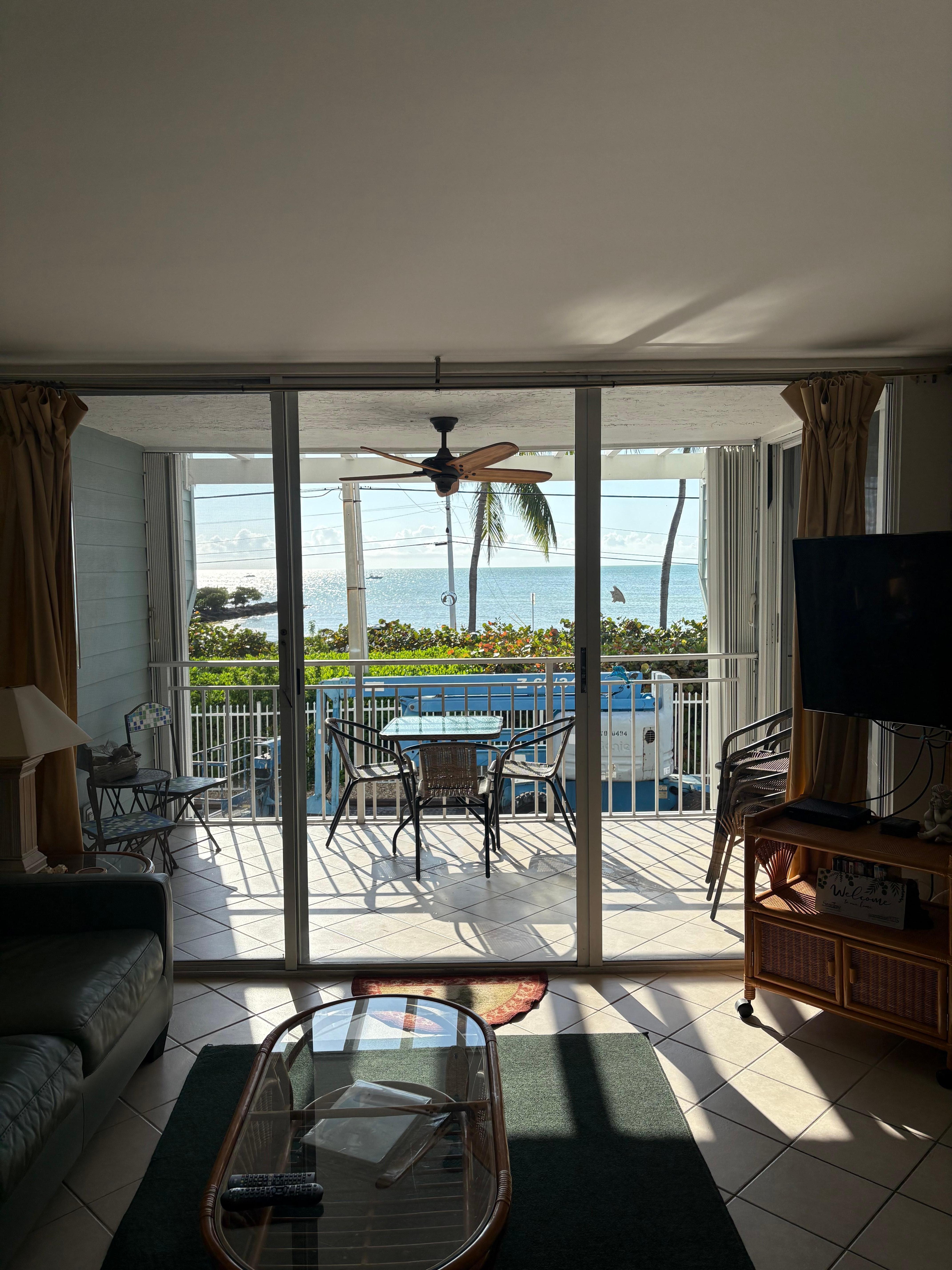 The condo is quite large at over 1150 square feet and looks directly at beautiful Smathers Beach. The 'Sea Jay' is located in La Brisa which is a gated community. It features a very large master bedroom with dressing room and a full bathroom. We look out at the beautiful Atlantic Ocean from the master bedroom, balcony and living room. Adjacent to the beach is Key West's longest sidewalk along the ocean for bike riding, jogging or walking. La Brisa has a heated pool, jacuzzi, sauna, clubhouse, lighted tennis court, three BBQ grills, picnic benches and covered Tiki huts. It is a quiet, family friendly location surrounded by tropical foliage. Consider us your 4 star luxury hotel suite but with the advantage of your own kitchen and a large second bedroom with another full bathroom. The condo has central A/C, cable TV in each room and a washer/dryer with all the conveniences of home in a secure setting. La Brisa is on the edge of old and new town in beautiful Key West.
