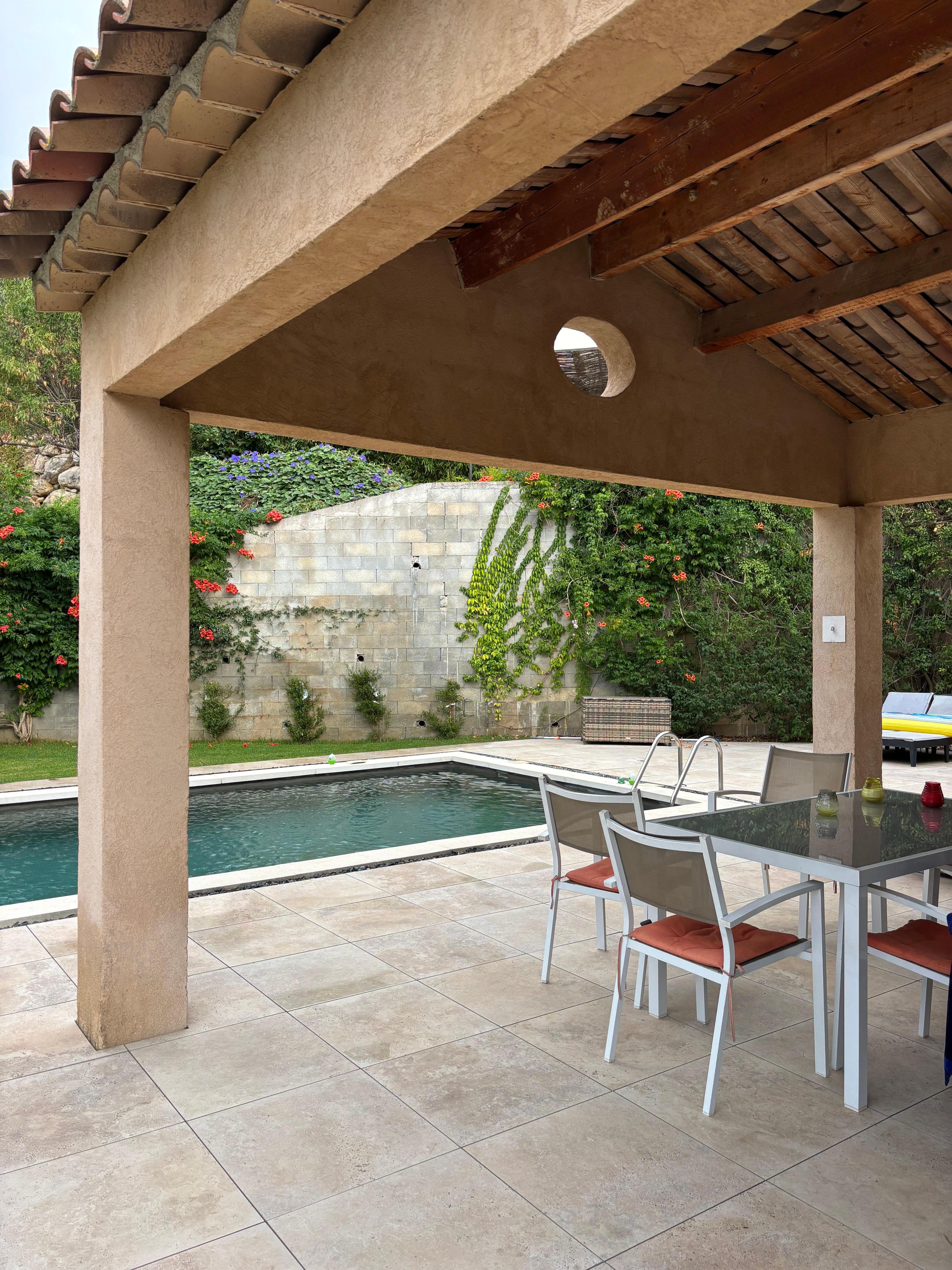 New comfortable villa tastefully furnished, large living room open onto large wooden terrace 150M2 and 8X4 swimming pool, summer lounge, barbecue. 4 bedrooms, 2 with shower rooms, 1 bathroom, air conditioning, fully equipped kitchen: oven, microwave, 2 fridge / 2 freezers, dishwasher, washing machine, induction hob, espresso coffee machine, internet, connected TV , TV in all rooms. Possibility of baby bed, changing table and high chair. The villa enjoys exceptional calm in the mimosa valley, just 15 minutes from the sea, 15 minutes from Cannes, 40 minutes from Nice airport, it will be your haven of peace on the French Riviera. Our villa combines all the pleasures, calm, a clear view of the Tanneron, the swimming pool, the sea, the walks, a pleasant village to live in, and all that very close to Cannes, Antibes, Juan les pins, Nice, for more fun activities! We will do everything to make your vacation a success, reserving you the best welcome, in a neat and clean house.