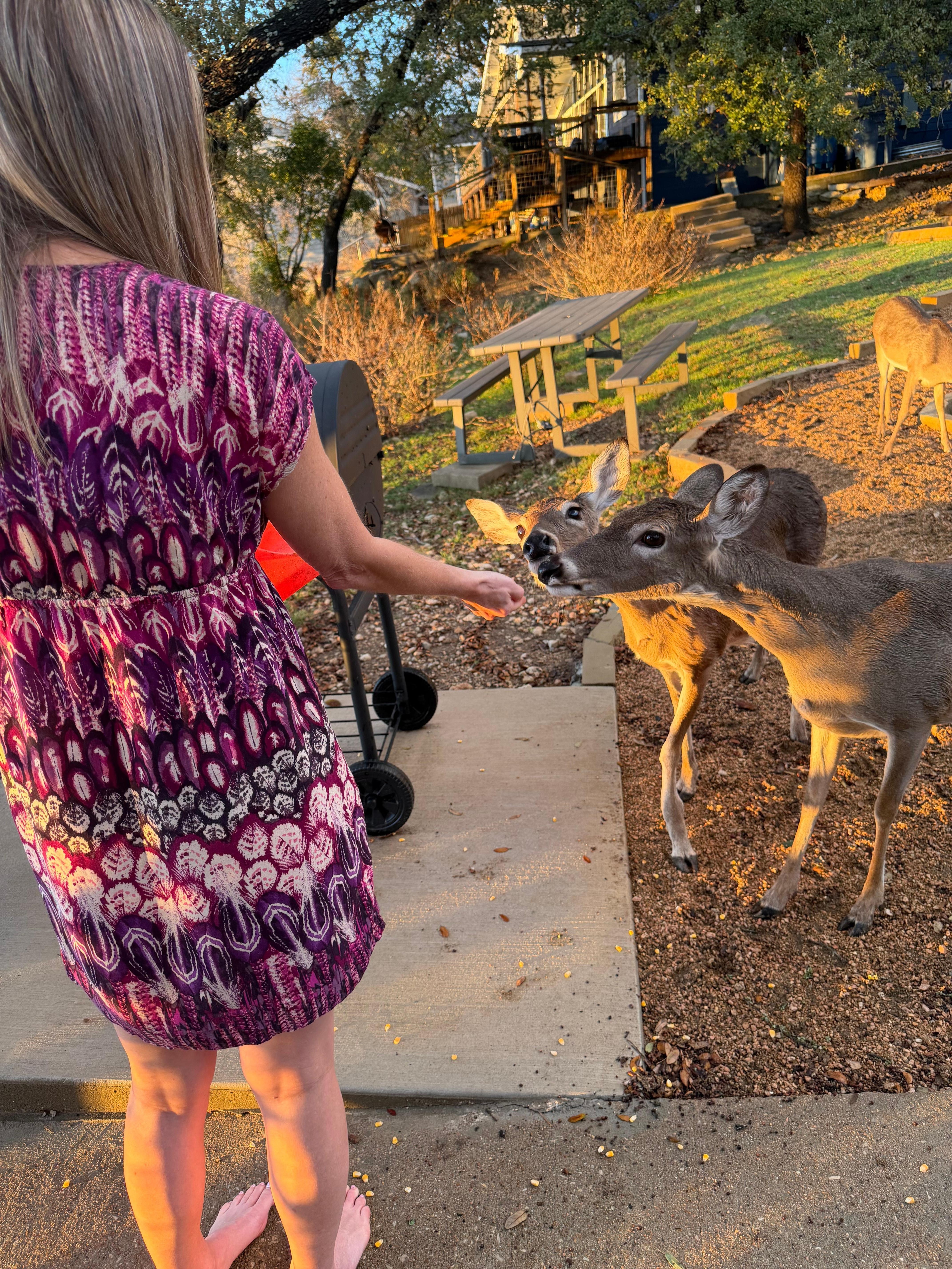 **Feed the deer that congregate at the front door (some will feed