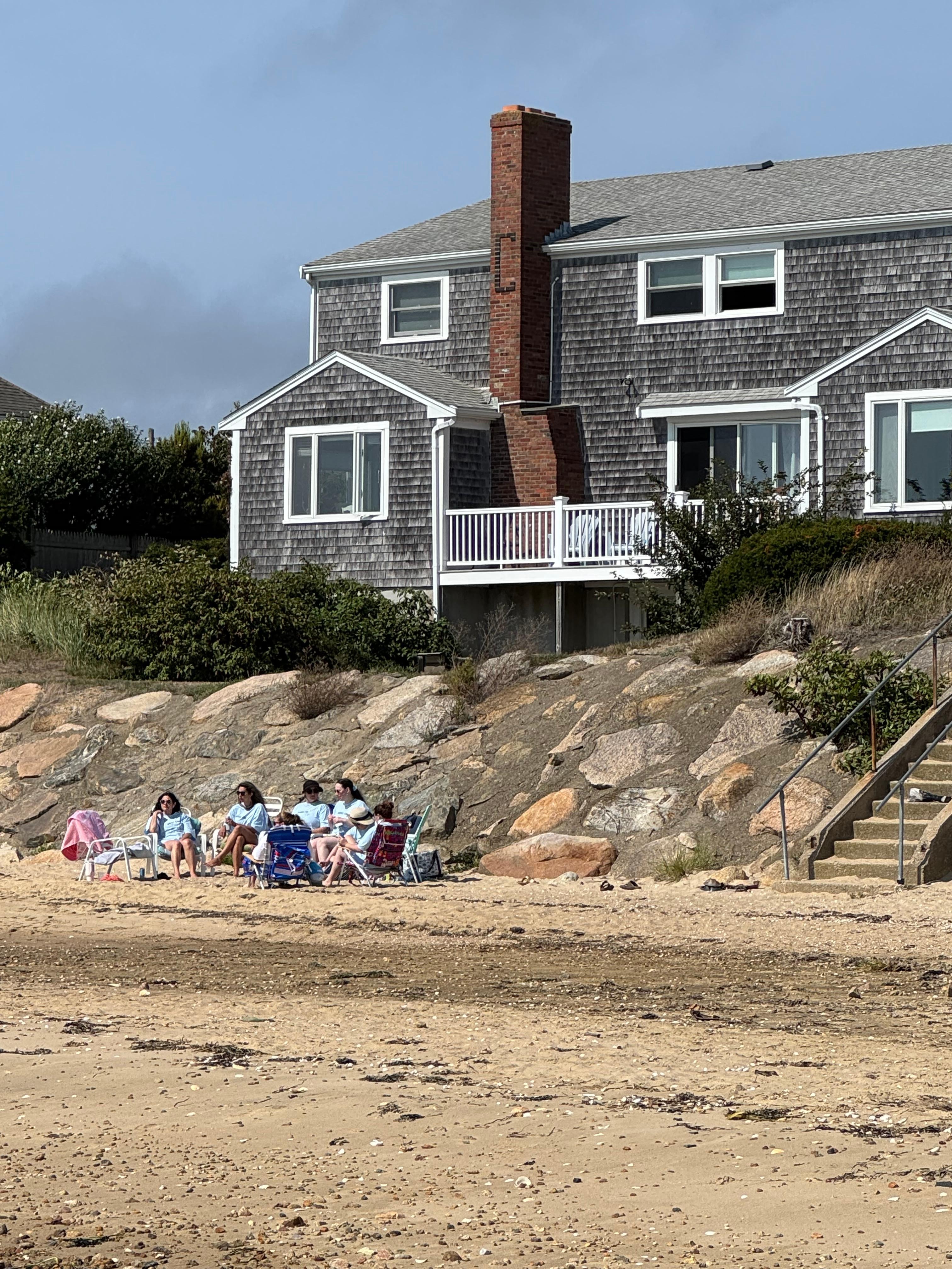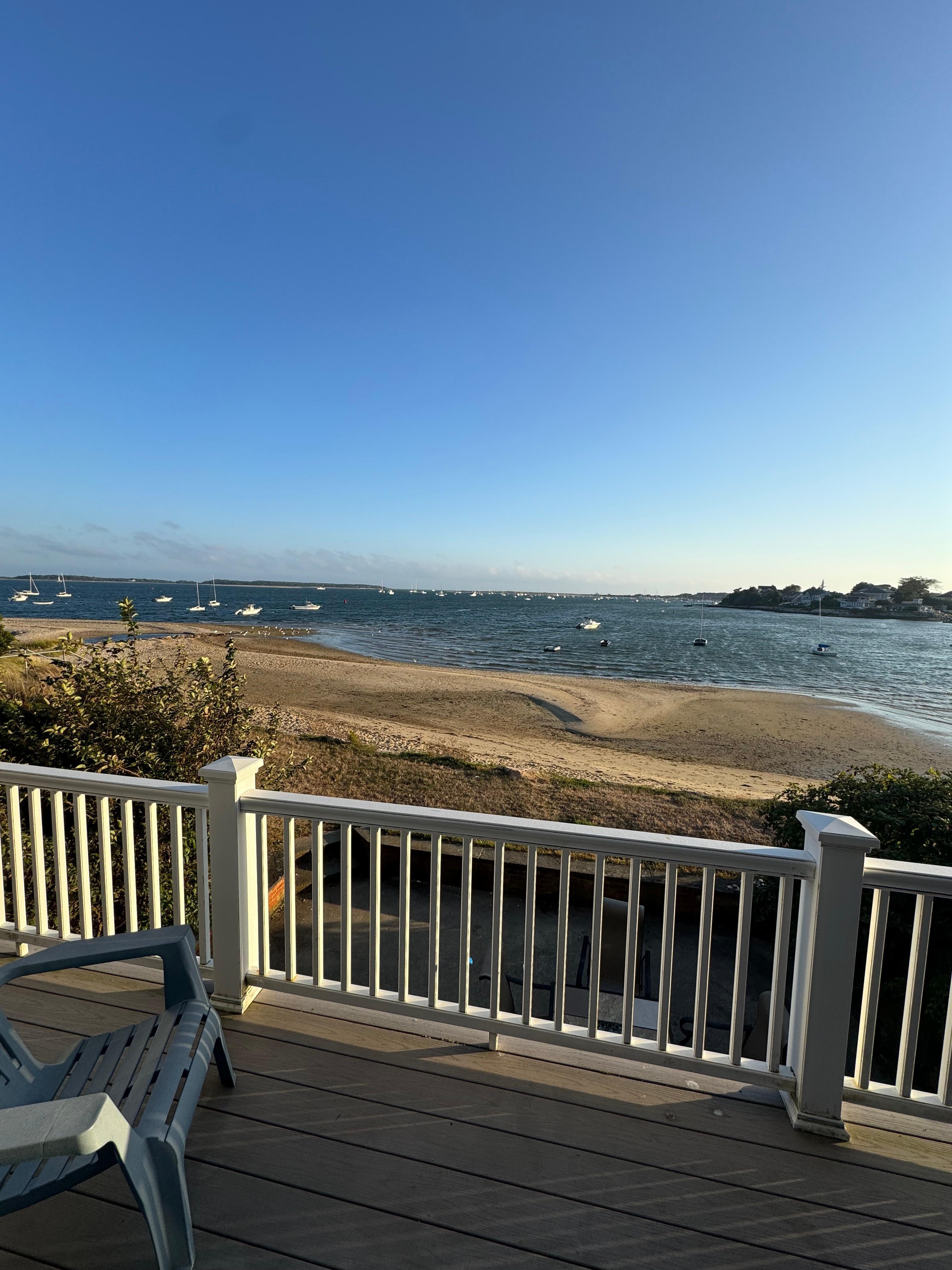 The view here is to die for...This spacious beach house sits directly on Cape Cod's Lewis Bay. Perfect for a family vacation or family reunion with your own beach to lie on, yard to play in, patio to grill on, and deck to watch the ferry boats go by. The extensive eat in kitchen (where all 10 of you can eat comfortably) flows right into the sizable yet charming family room. Each cozy bedroom is furnished with a bed and dresser, linens not included. Websites where easily accessible linens are available will be given upon request. There is a washer and dryer on site. The bottom floor boasts a bar area that leads to outside patio perfect for entertaining and relaxing after a day at the beach. Walking distance to playground and public beach,Hyannis marina and Main Street which provides ample entertainment with a number of shops,restaurants,bars,ice cream, mini golf etc.