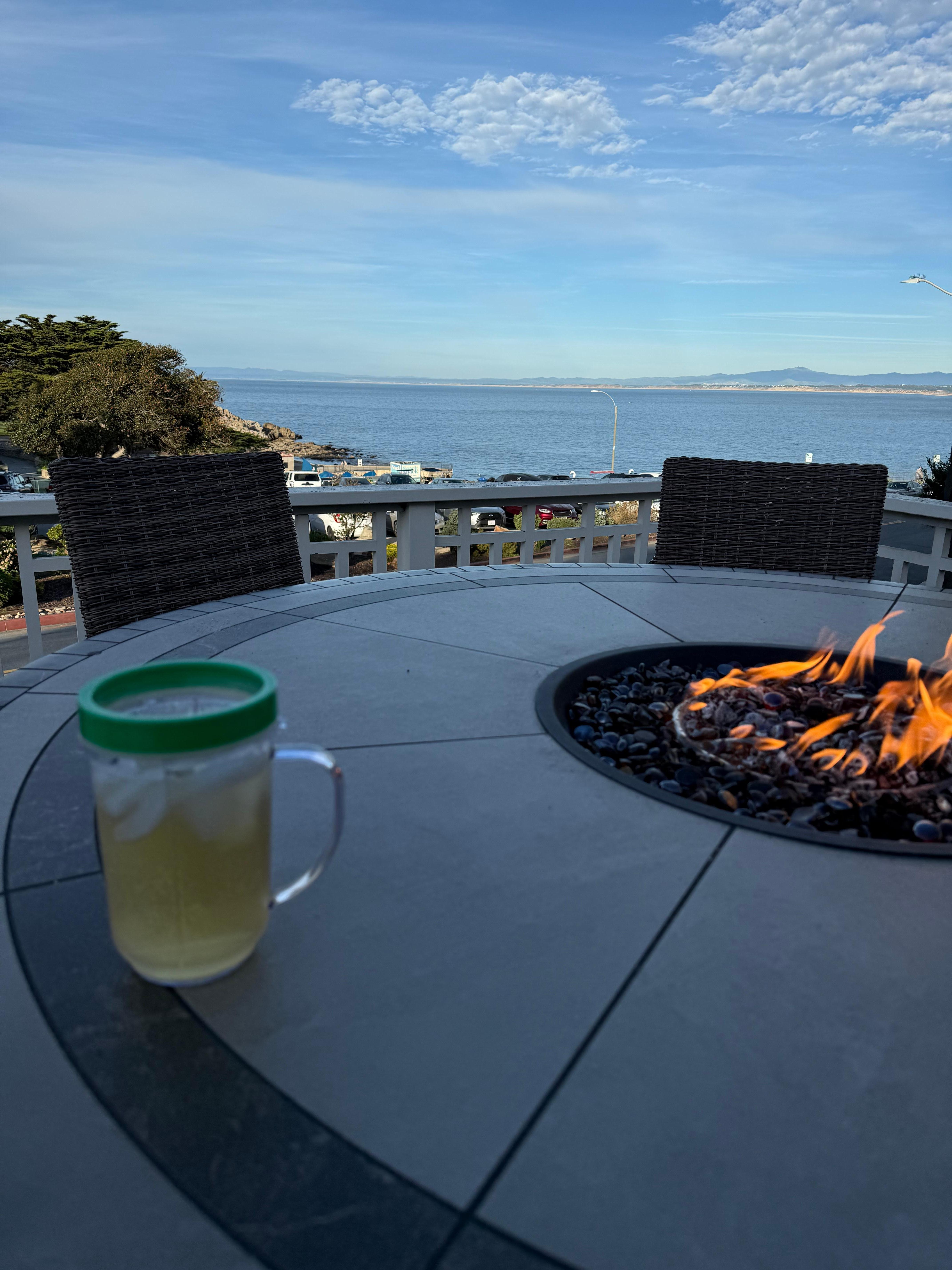 Nearby: world class golf, scenic 17-Mile Drive, Pebble Beach, Carmel and Big Sur. FEATURES: The large, elevated deck has ocean views, a bistro table with a built-in fire pit and seating for six (barbecue in back). The main living area has comfy leather recliner sofas, a bay view windowseat and table for evening games, a den with a sectional and a jumbo TV, and a separate dining area.