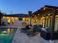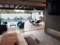The home offers two (2) spacious master suites and three (3) full bathrooms so your group can enjoy quiet moments of relaxation with no compromise in comfort. The great room also features a collapsible wall so you can effortlessly connect (or disconnect) from the backyard action and take in the fresh air here in our sunshine state.