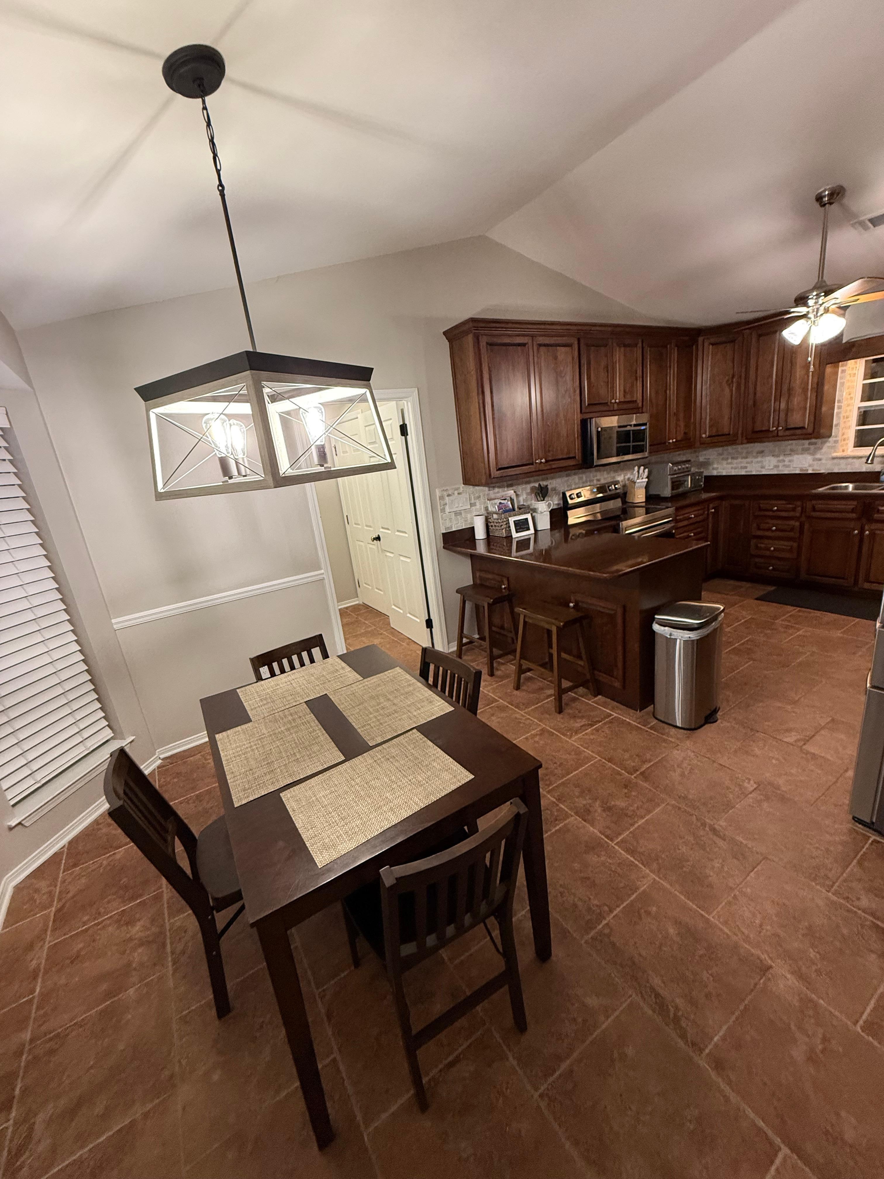 I highly recommend staying here. It’s clean, includes several kitchen appliances such as a blender, hand mixer, air fryer, toaster, BBQ Grill Utensils and more. The home is centrally located in Pensacola and has easy access to restaurants, grocery stores, the beach and UWF. The neighborhood is beautiful the homeowners were very kind and accommodating. I would definitely stay here again.