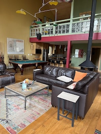 From the moment you step inside, vaulted ceilings, warm wood accents, and walls of west-facing windows draw your eyes to sweeping alpine views. Sunlight floods the open living space by day, while evenings center around the home’s rare 360-degree fireplace - a gathering spot where stories, laughter, and games around the pool table unfold. Designed with space and privacy in mind, this three-level lodge offers dual kitchens and living areas, along with a thoughtful bedroom layout that’s ideal for multiple families. Whether you’re sneaking away to a cozy reading nook or joining the group in the great room, you’ll find both togetherness and tranquility here.