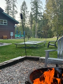 Newly constructed chalet completed in January 2020. Modern day build with an open floor plan including vaulted ceiling, quartz counter tops, all new furniture, and that is just the inside. You didn't come to Montana to enjoy the architecture. Hang out on the deck with seating pointed at the picturesque views of Teakettle Mountain while enjoying drinks as you cook on the Traeger grill. Or cozy up to a warm fire pit while you cheer on your team in a game of horseshoe or volleyball. Relax in a hammock under the trees while listening to the birds singing and squirrels chirping. You can usually see deer and elk coming into feed on the tall grass as they pass through.