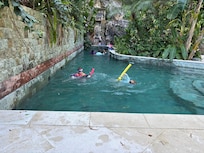 The main pool is designed for both recreation and relaxation, with a lap lane for swimming, a shallow social area, and a dramatic waterfall framed by lush gardens and natural stone. Together with the second pool by the new wing, the property offers two distinct pool experiences suited to different moods and ages.