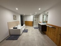 - a bedroom with a large size bed (180 * 200) combined with a large bathroom with a 2 seater balneo and a glass shower,