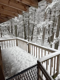 "Robins Nest" features an open floor plan, a pellet stove (warm & cozy) and a 7 person hot tub.