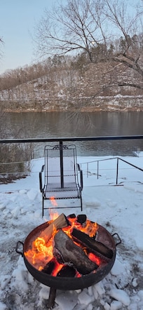 *The sliding glass door goes out to a large deck that overlooks the river, as well as a fire pit for those chilly nights. Music can be Bluetoothed to an outdoor sound system.