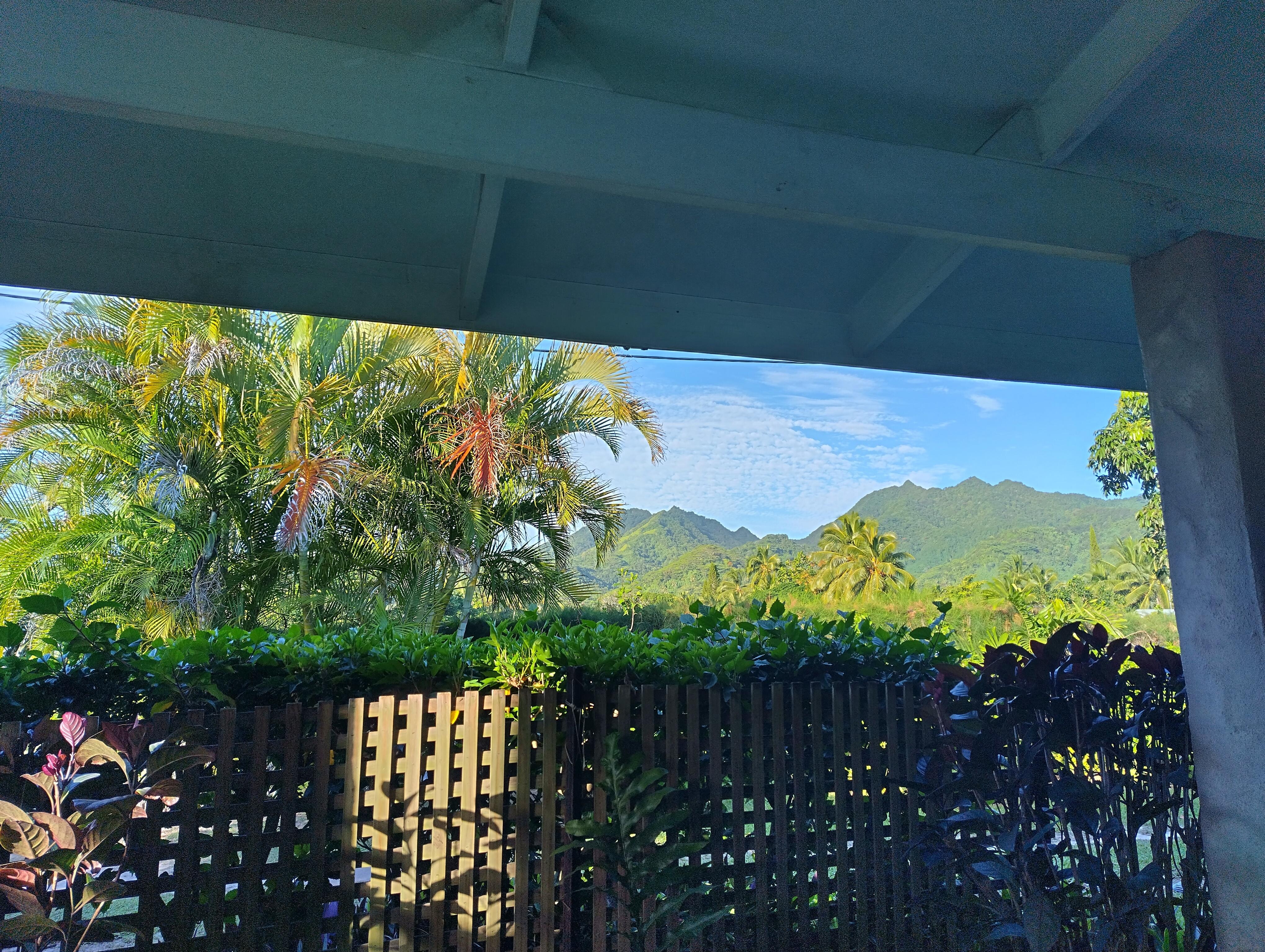 Large lawn with gardens, fruit trees, spacious tiled verandahs front and back for outdoor living, gas BBQ, outdoor furniture and loungers. Enjoy breakfast on the tiled verandah with beautiful mountain views ... wander 50 metres along the beach for Sunset cocktails at Manuia Beach resort .. eat out or in, meal-making's a pleasure in the bright convenient kitchen, the choice is yours. Be as lazy as you like in paradise!