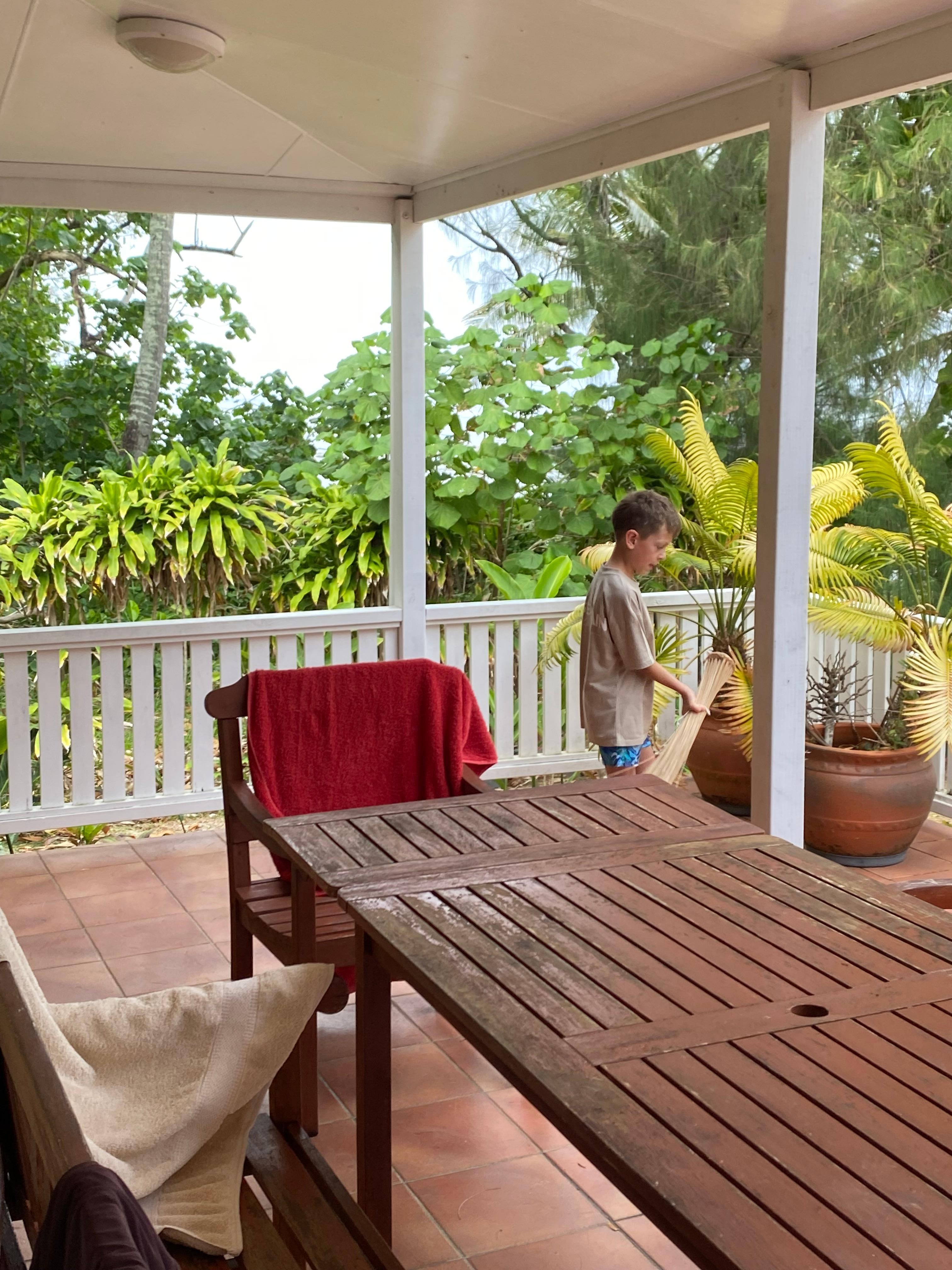 The home consists of 3 bedrooms, walk thru wardrobes and ensuite bathrooms lie off the 2 main bedrooms that open out onto the wide spacious verandah and face the lagoon. Super king-size beds in each main bedroom one of which can be separated into singles and 2 single beds in the third bedroom. A third bathroom serves the third bedroom and the remainder of the house. All bedrooms are air conditioned with ceiling fans throughout. All windows and doors are security and insect screened