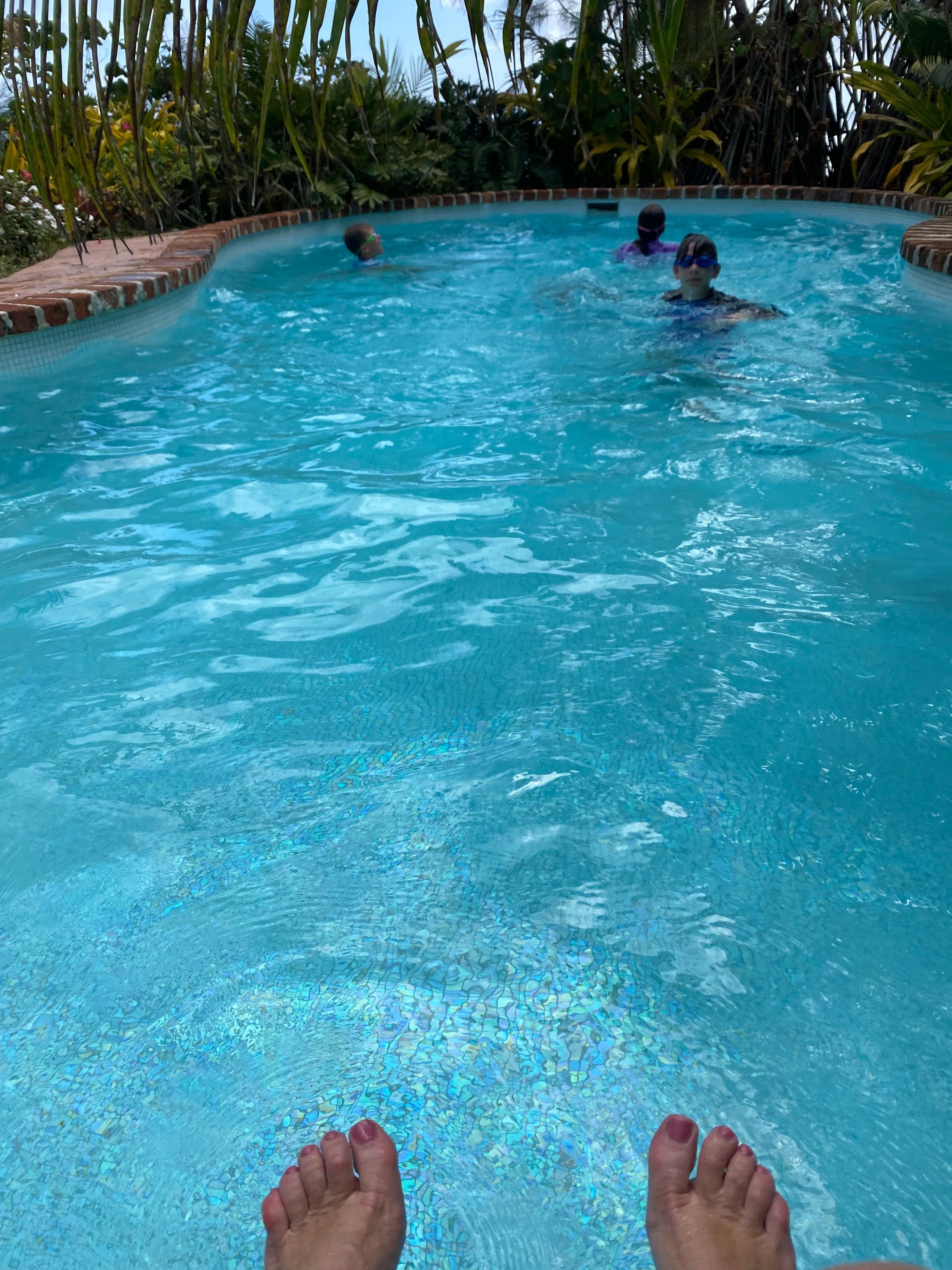 From the verandah you step down to the cool and refreshing swimming pool [there is a gate at the top of the steps for those little ones] and the white sandy beach and blue lagoon is ten metres beyond that. There are also a number of sun loungers around the pool to soak up the sun.