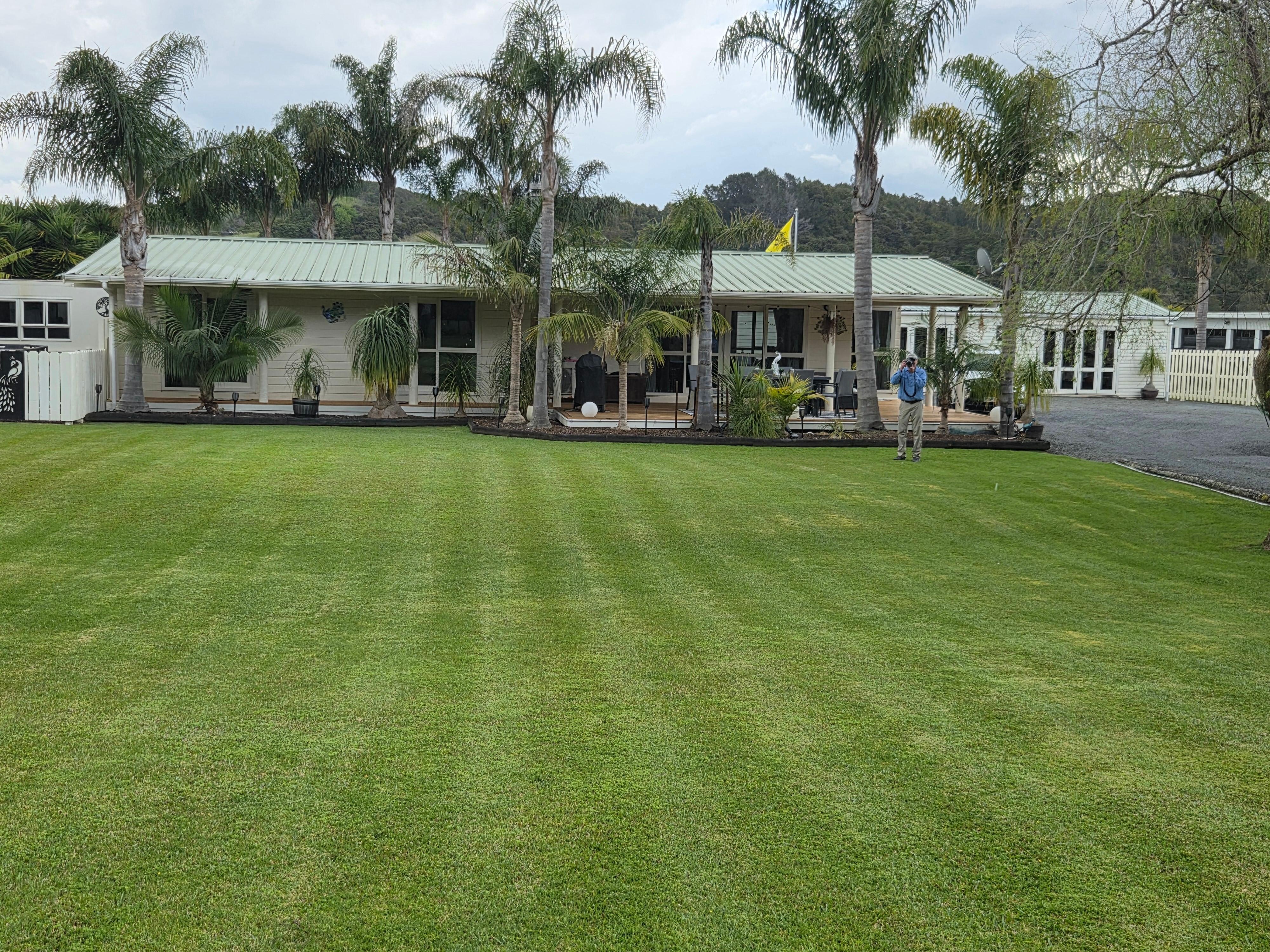 Back lawn is fully fenced, safe and secure for young children, well sheltered with trampoline and sand pit. Plus there is a sleep out with queen size bed.