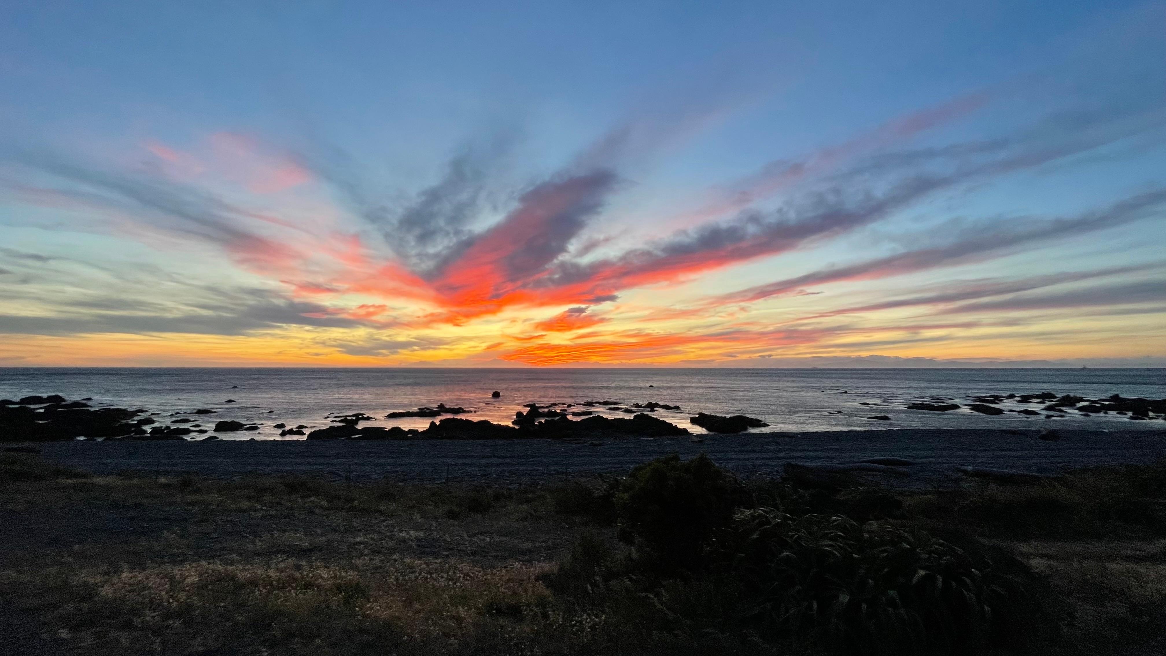 Hunter Bay Bach is absolute stand alone beachfront at the southernmost tip of Wellington. 20 minutes from the CBD its position at the foot of our family farm overlooking wild Cook Strait with uninterrupted sea views across to the snowy South Island mountains.