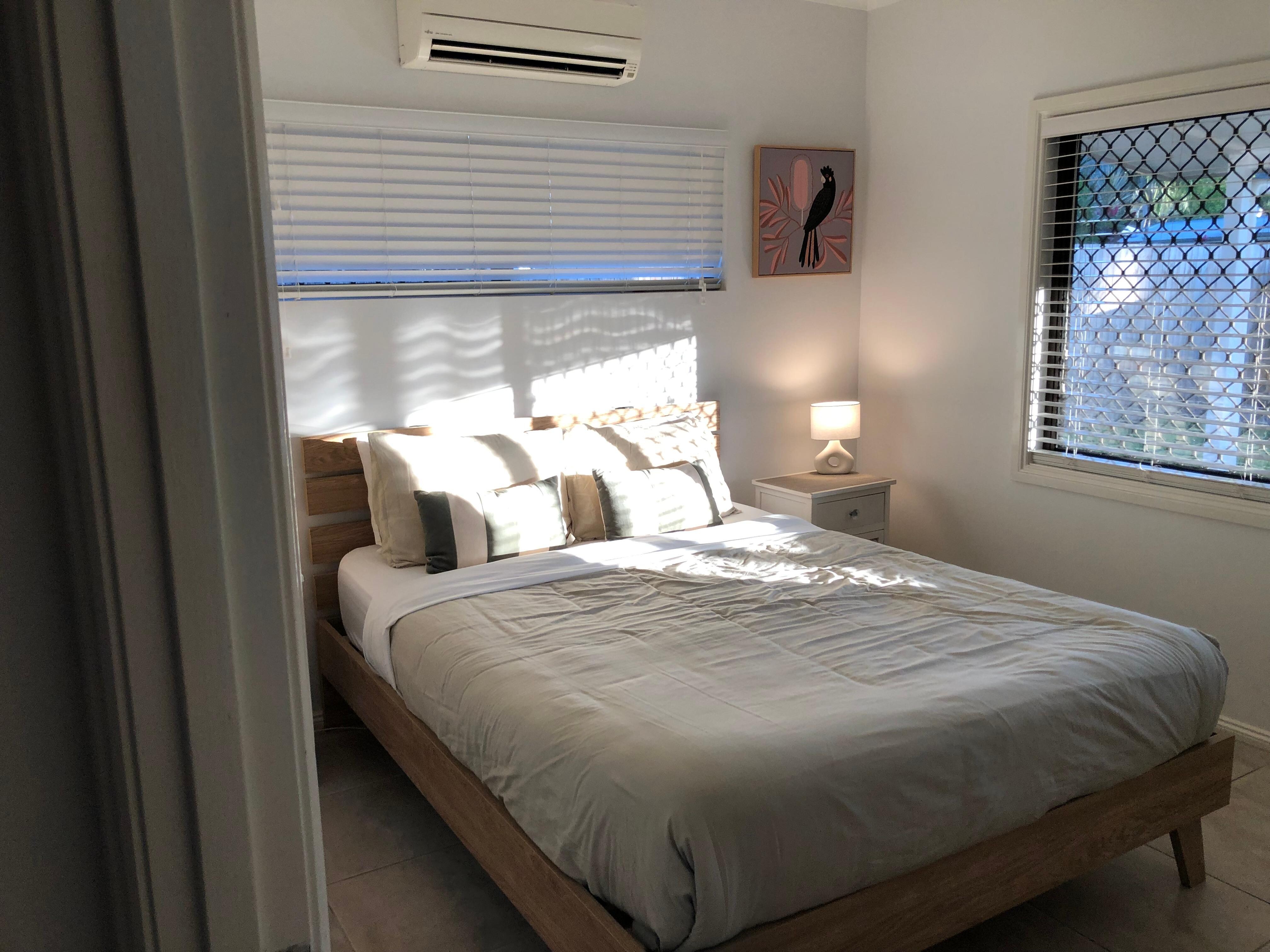 First bedroom has queen bed, second bedroom has queen bed and the third bedroom has two single beds. All bedrooms have built-in wardrobe‘s & air conditioning