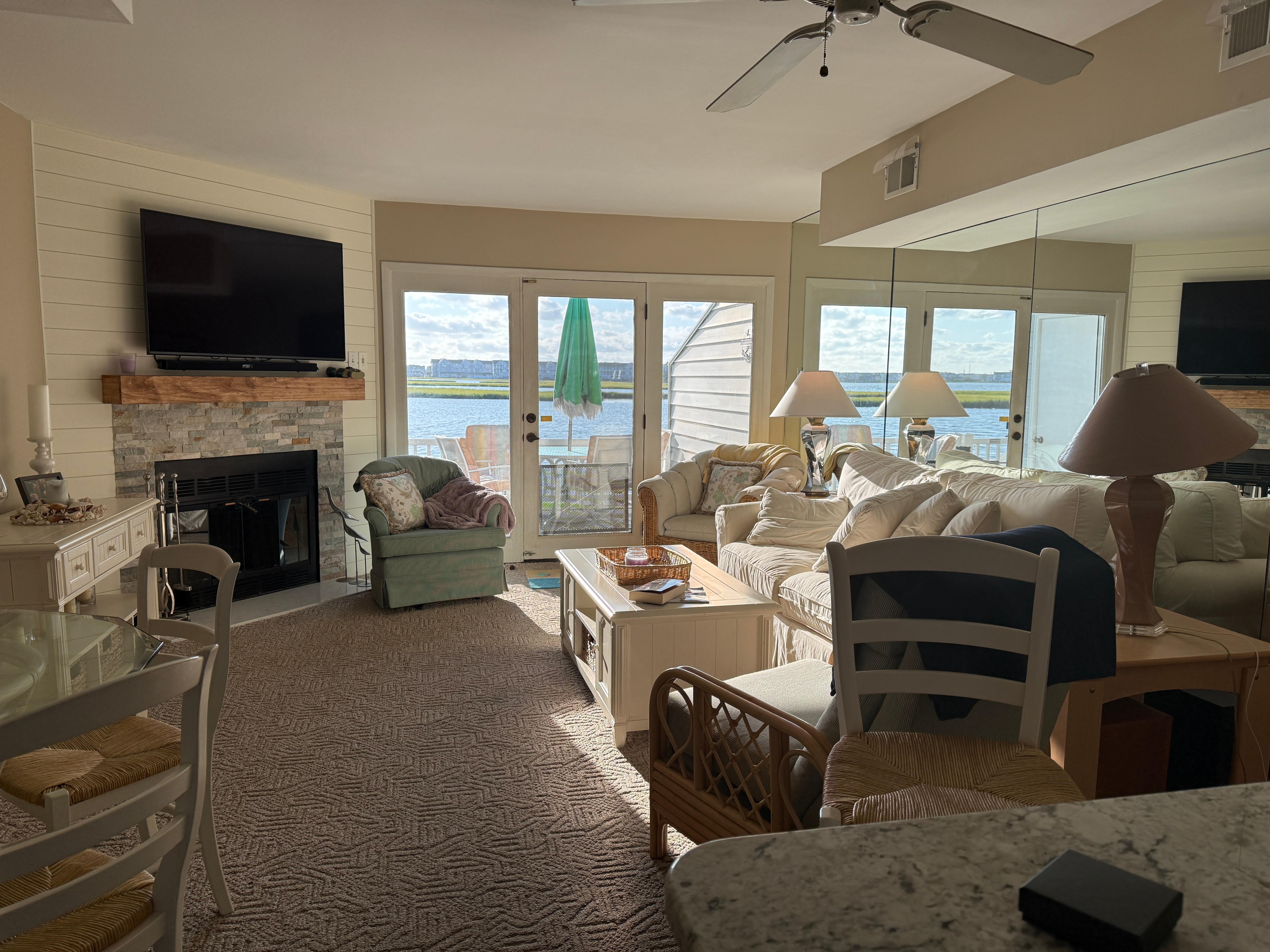 Welcome to Fenwick Landing, where coastal charm meets modern comfort in this exquisite bayside townhouse. Just a stone's throw away from Harpoon Hanna's, Papa Grande's, and Catch 54, Winner of the Wine Spectacular Award of Excellence 7 years in a row. With three spacious bedrooms and two and a half meticulously designed bathrooms, this vacation residence is a true sanctuary for relaxation and rejuvenation. Imagine waking up to stunning views that stretch across the shimmering bay, inviting you to embrace the beauty of waterfront living. With 2 kayaks (with paddles and life jackets) explore the bay at your leisure. Accommodating up to six guests, the townhouse features two plush queen beds and a cozy full bed, ensuring that everyone enjoys a restful night's sleep. For those lazy beach days, you'll find beach chairs at your disposal, ready for you to soak up the sun and savor the sea breeze. The fully equipped kitchen is a culinary haven, perfect for whipping up delightful meals to share with family and friends. Step outside onto the two expansive bayside balconies or the inviting patio, where you can sip your morning coffee while basking in the gentle warmth of the sun or unwind with a glass of wine as the sun sets in a blaze of color over the water. And with the convenience of an in-unit washer and dryer, you can spend less time worrying about chores and more time enjoying your seaside escape. The private boat dock offers an added bonus for water enthusiasts ready to explore the bay. (Boat trailers cannot be kept on the property) At Fenwick Landing, every detail has been thoughtfully curated to provide you with an unforgettable experience. Come and indulge in the tranquility of bayside living for your next family vacation - you deserve it.