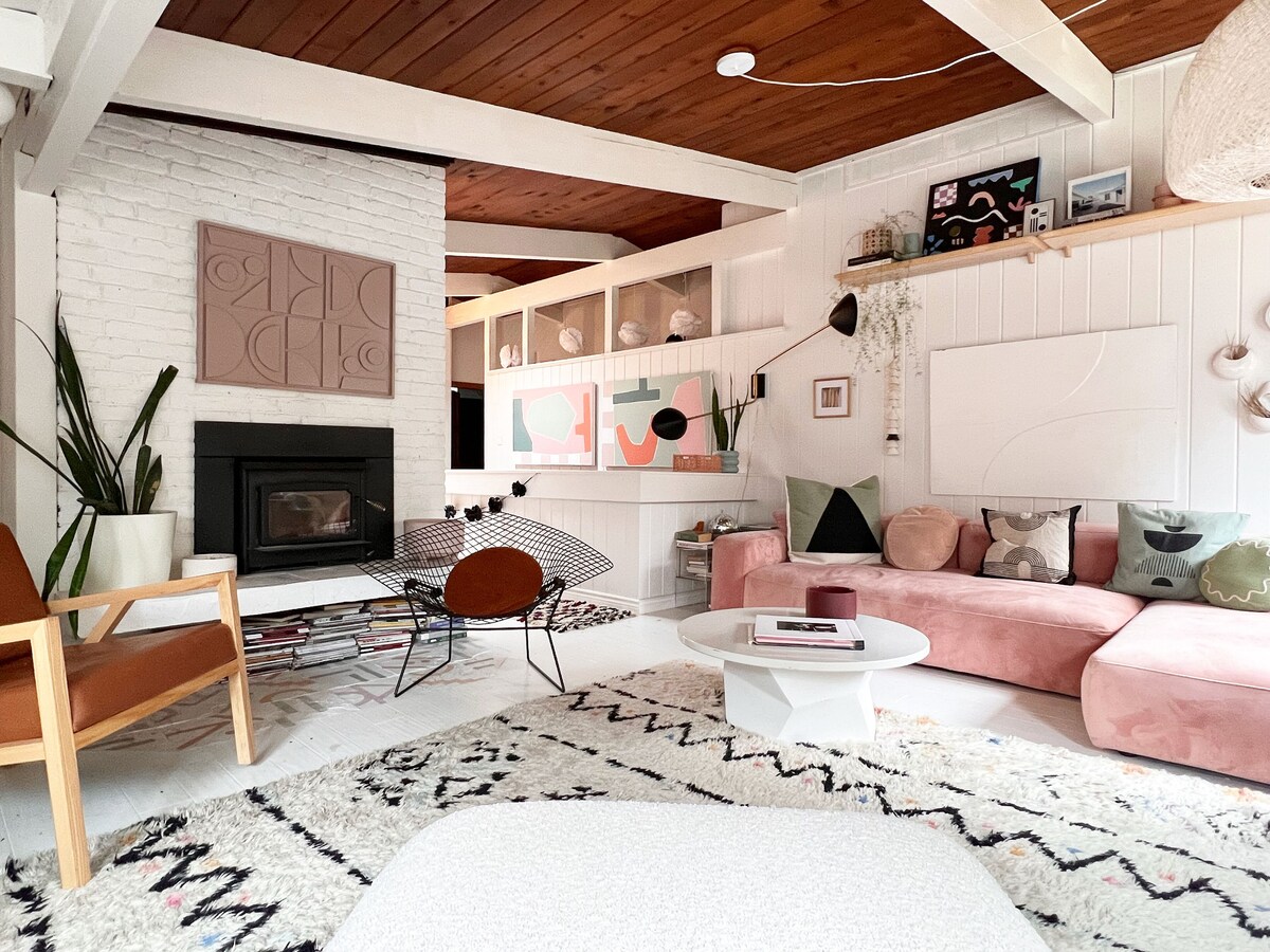 Welcome to our cherished family home — a colorful 1962 post-and-beam mid-century gem, lovingly curated by an artist and designer. Featured in HGTV Magazine and Apartment Therapy, this one-of-a-kind space is full of inspiration, warmth, and creative charm.