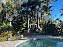 You will most likely spend most of your time outside as the spacious backyard offers tranquility with the waterfall feature off the heated pool and several areas to sit and enjoy a good book or meal. The backyard is fully fenced in.