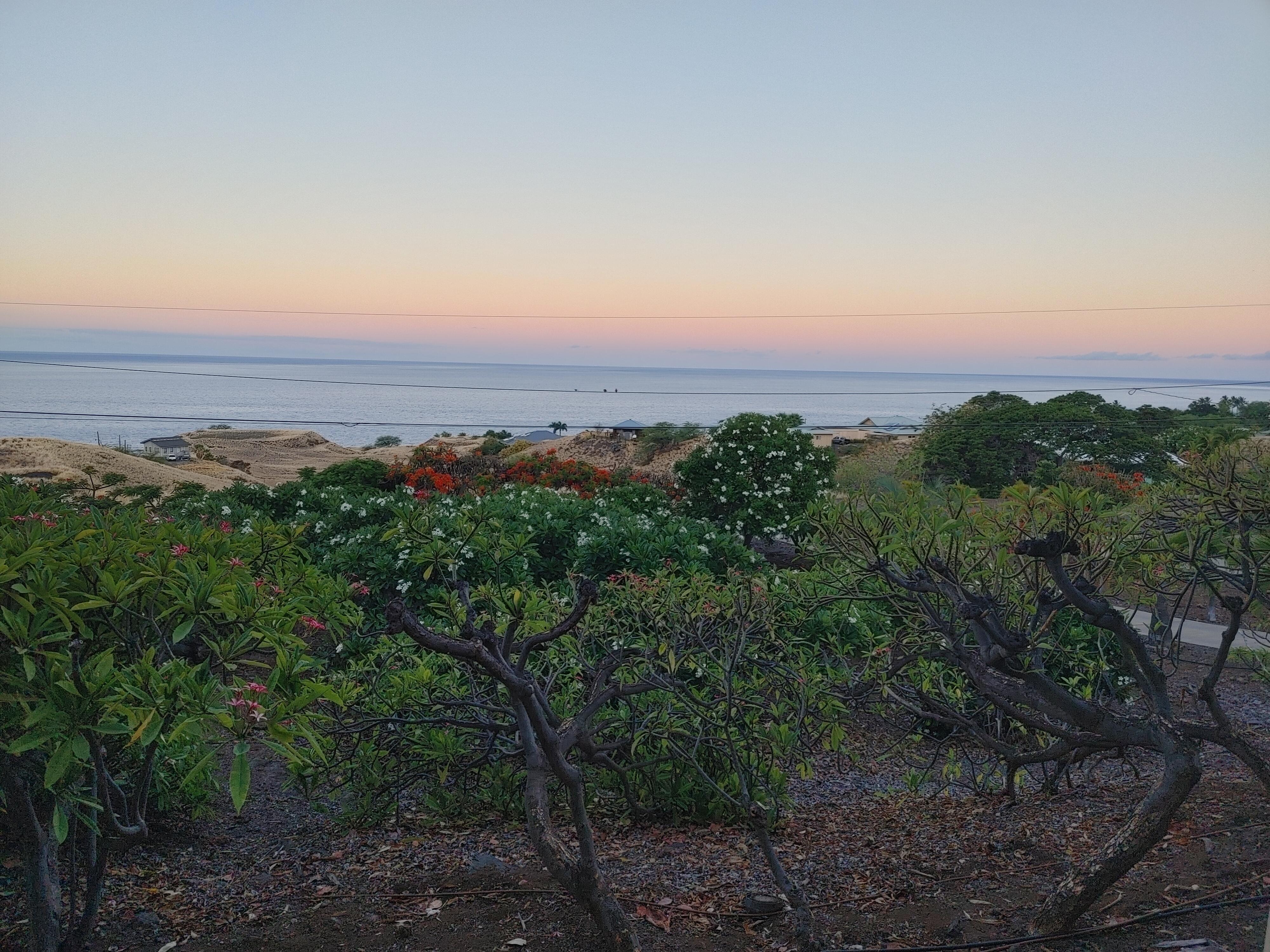 From the lanai, guests can watch a sprinkling of fishing boats, tour boats, military vessels, and pleasure boats. Several times a day a tug towing a barge pulls in and out of nearby Kawaihae Harbor. With good luck and timing, guests can spot Hawaiian spinner dolphins, humpback whales, and the occasional green flash. We can't guarantee blue skies and no mosquitoes; but odds are better here than anywhere else in the central Pacific. The house sits in the rain shadow of the Kohala Mountains, and annual rainfall totals are typically in the single digits!