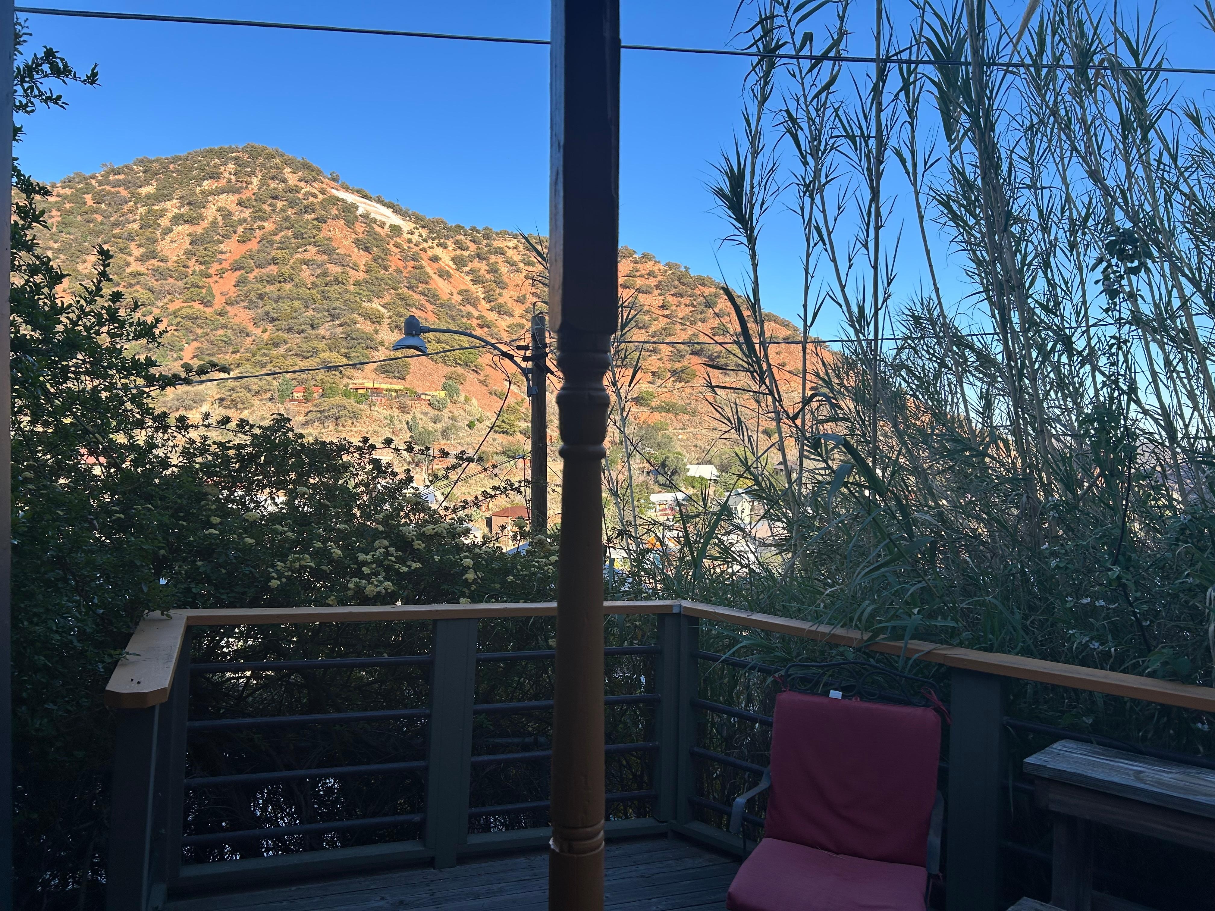 Built in 1895, before Arizona even became a state, this fully restored and charming one-bedroom miner’s cottage is located along an old mule path turned staircase above street-level public parking – accessible via just enough stairs to feel healthy! Walk to fine dining, arts, museums, galleries, evening entertainment, and historic attractions; watch great birding; access hiking trails right above the house; and relax and enjoy gorgeous sunsets and stargazing from your private deck.