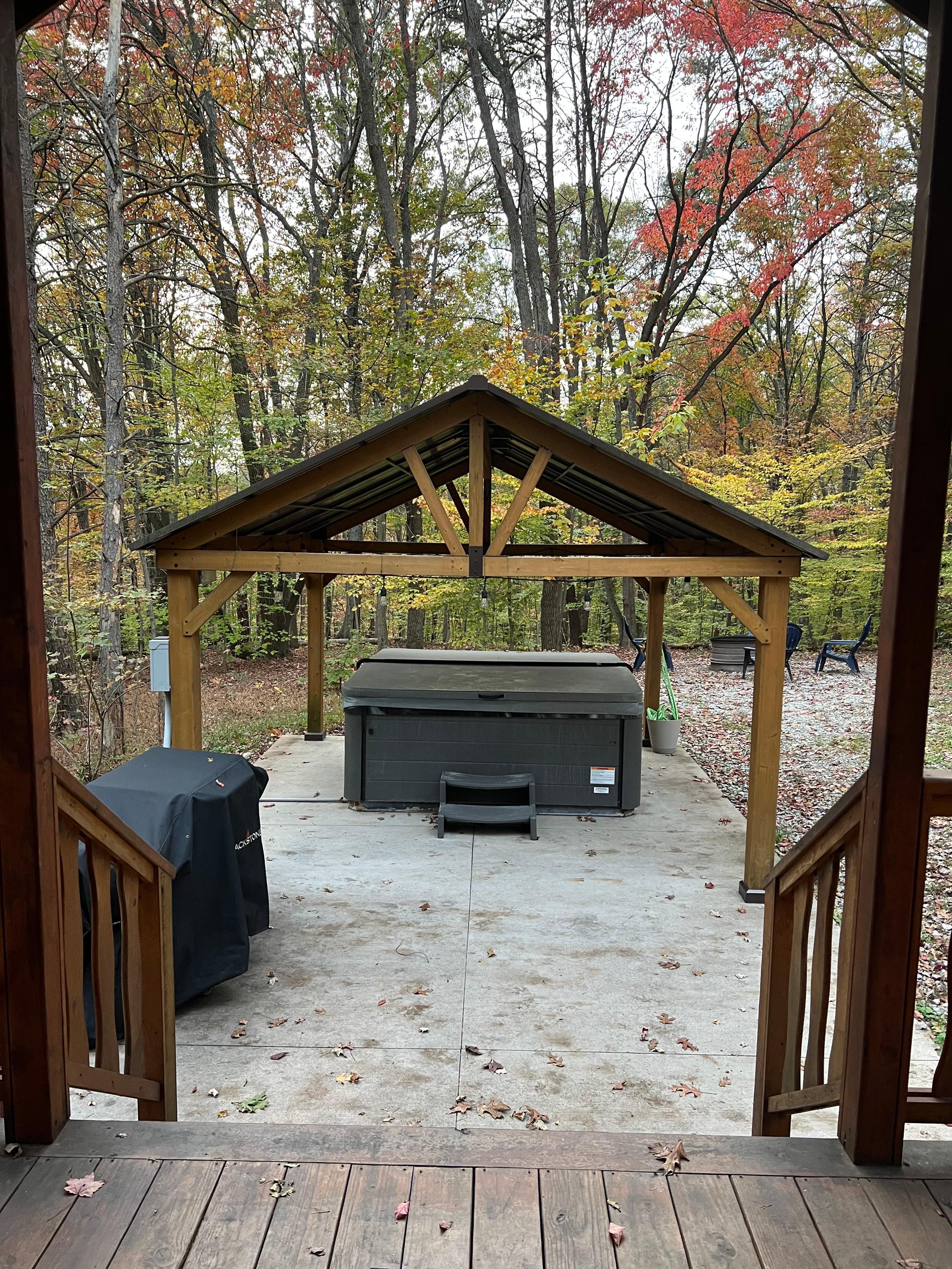 Amenities include a covered Large Hot Tub positioned outdoors underneath a spacious gazebo, flat screen TV's mounted in the living room and master bedroom, Satellite T.V., large firepit, Blackstone Griddle, bunk beds, a "Kids" loft, skylights in the main living space and much more to enjoy!