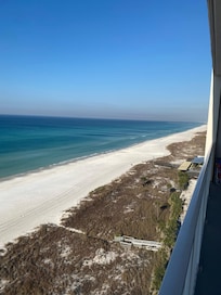 Our unit has an airy feel, with over-sized sliding glass doors opening from both the gulf front master bedroom and family room onto an over-sized balcony overlooking the sugar-sand beaches and emerald green waters of the Gulf. It is perfect for outside entertaining with a beachfront view.