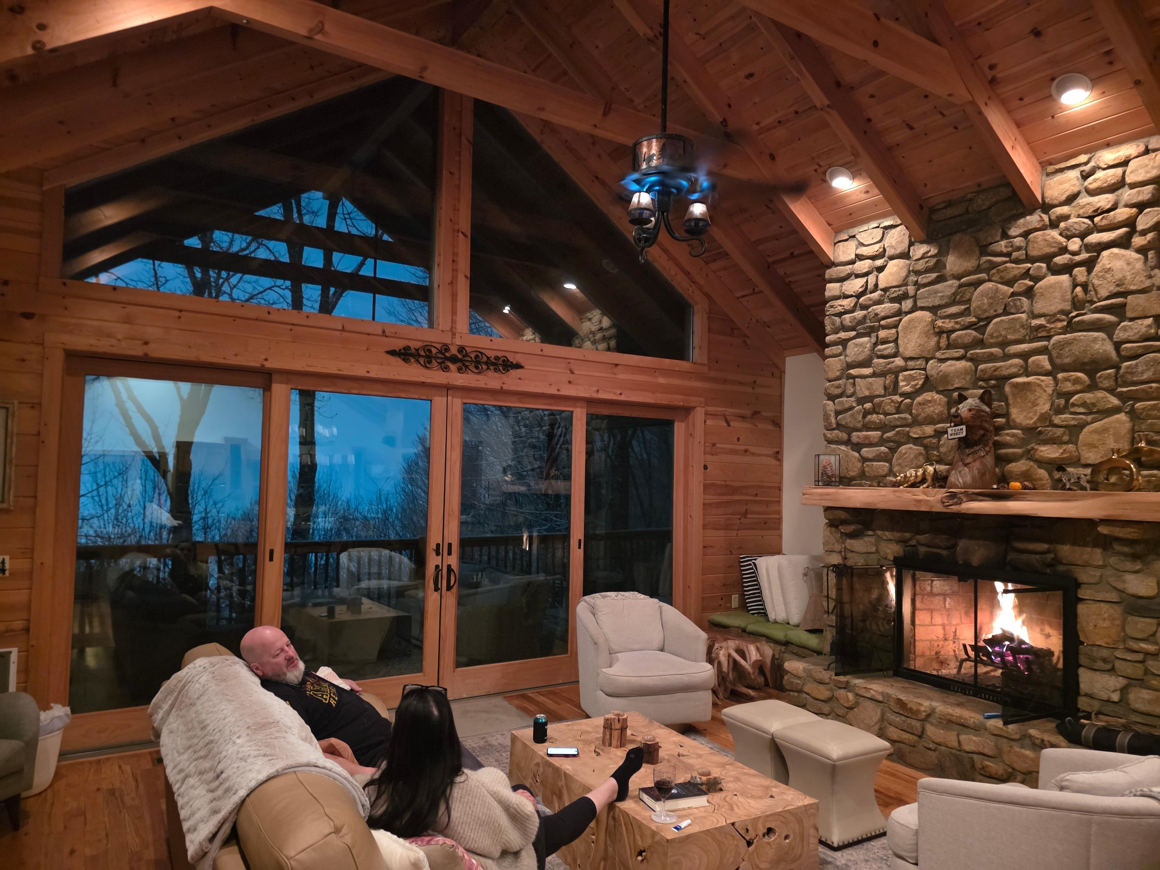 Bear and Bull Lodge affords the luxury of 2 fireplaces, 2 separate Great Rooms, the calming feel of wood, stone and natural elements within the home, and serene landscaping outside. Kids love getting out in and around the expansive Hatley Pointe multi-million dollar development for hiking, exploring, creeks and more. The expansive, multi-level deck areas afford additional outdoor space to relax & unwind. Comfortable seating, porch hanging bed, allow for the entire group to sit and soak in the spectacle of the Smoky Mountains.