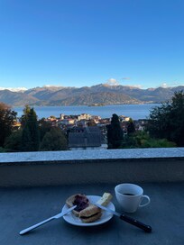 We really enjoyed our stay in apartment 6. The property manager was very helpful, helping me with a car problem on arrival, and he kindly upgraded us to an apartment with two bedrooms.Although the apartment was very clean, well presented, reasonably well equipped and comfortable, it was disappointing that, due to it being north facing, there was never any sun on the balcony, the view from which was fantastic. It also lacked basics I'd expect to find in a self-catering apartment such as foil and cling film. The laundry room was a great addition, with two washing machines, a tumble dryer, clothes airers, and an iron and ironing board.I feel that the charge for the dog was high, considering you wouldn't know he'd even been there and he makes no mess, unlike small children who are accepted for free.Being in a mid floor apartment meant noise from above was an issue, with scraping furniture and footsteps.If I returned, I'd ask for a top floor apartment to the south, where there's a possibility of seeing some sun.Free onsite parking is found in the garages below the properties.