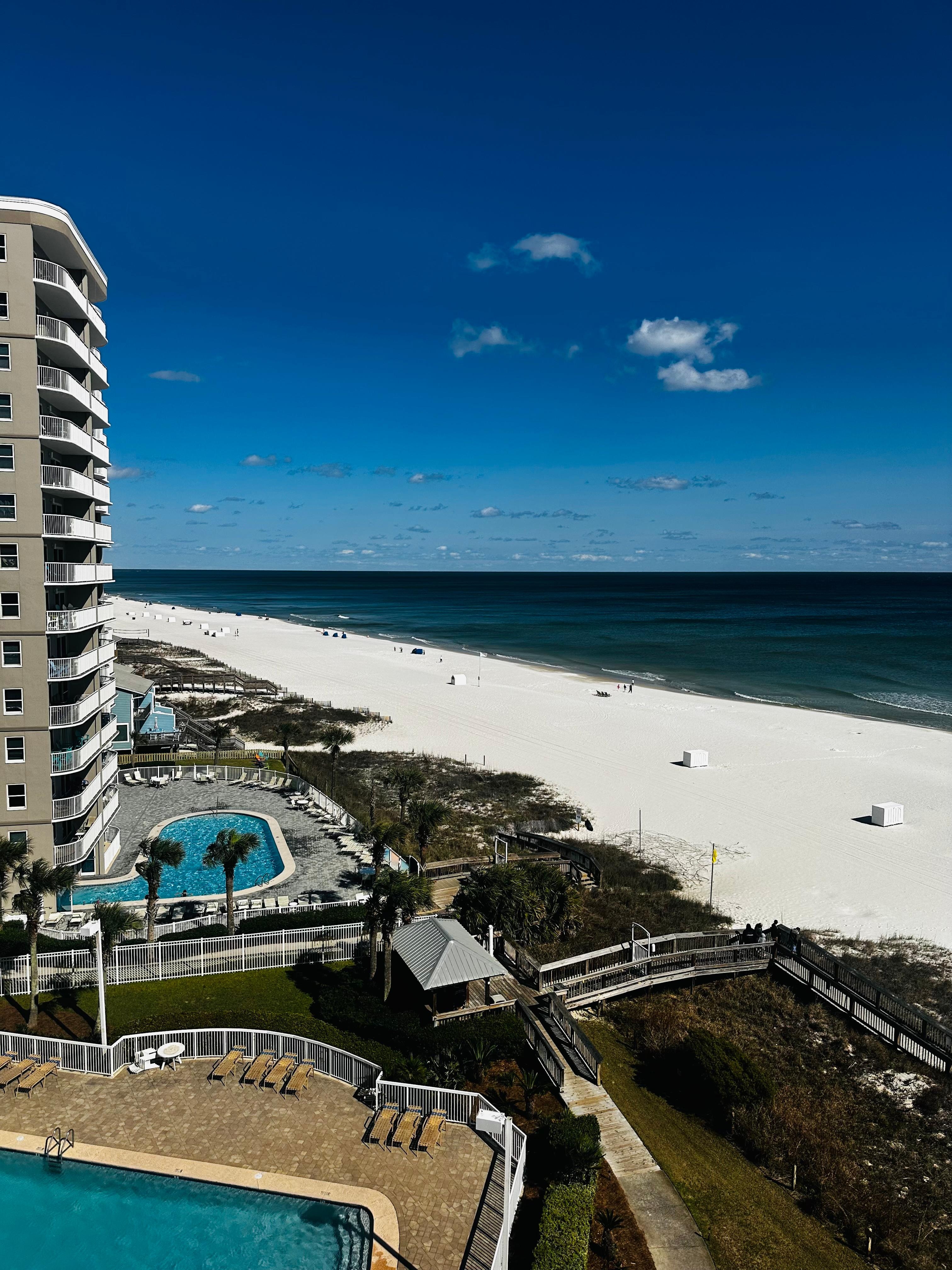 The balcony has the perfect view of the sunrise, beach and pool. Great location. The condo was well equipped for our stay.