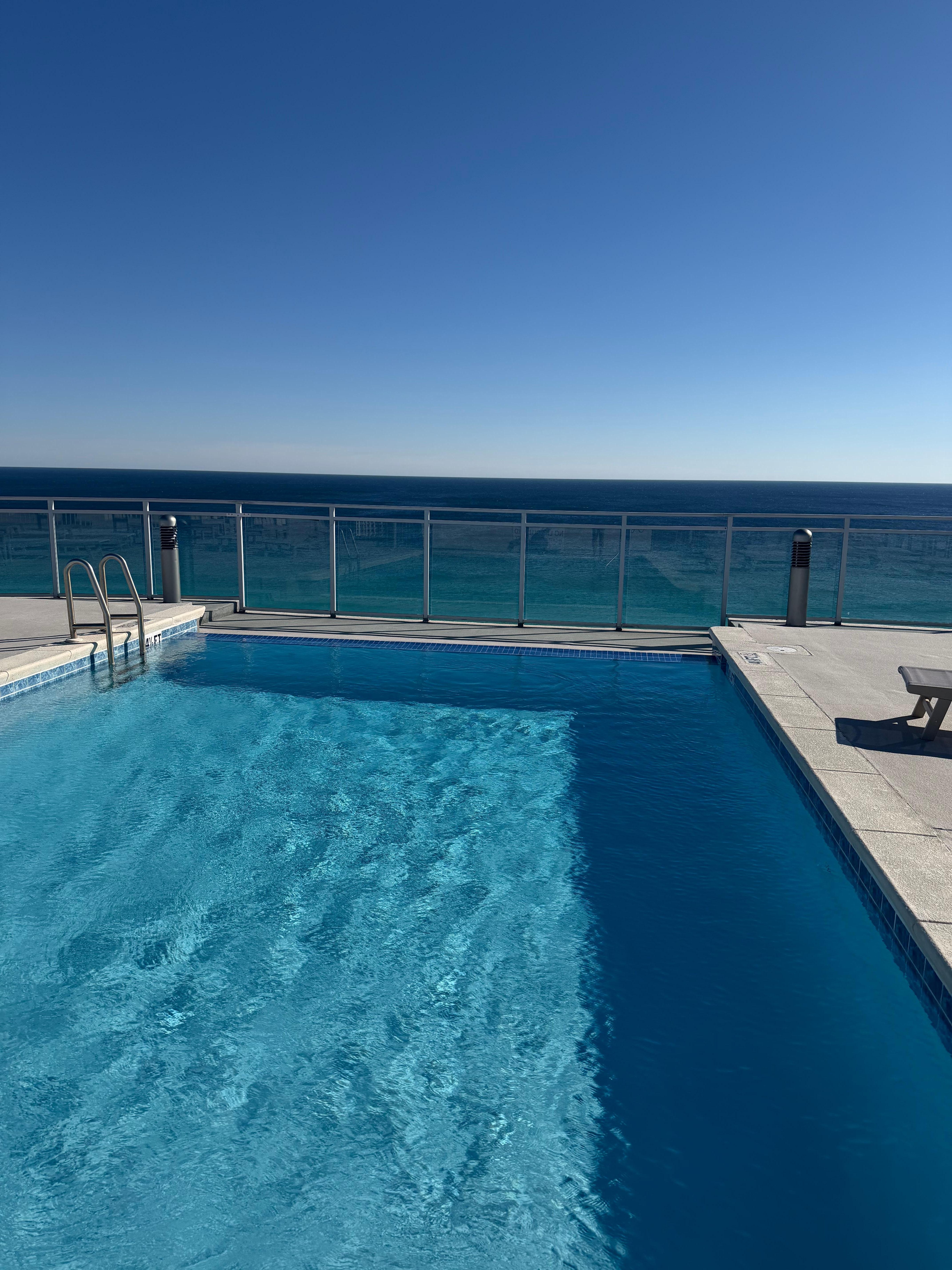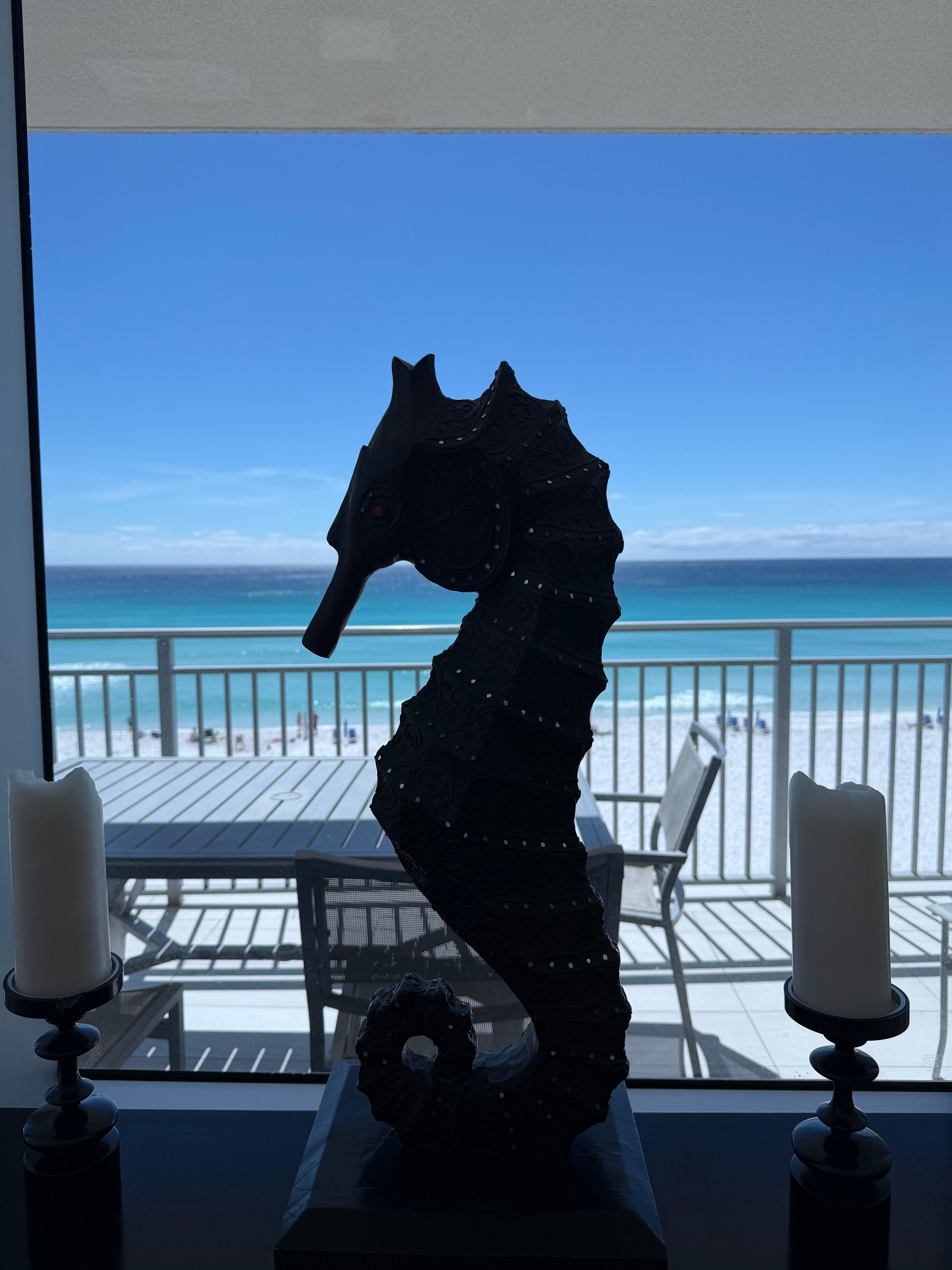 Stepping into this open floor plan unit, is like stepping into an aquatic heaven! As you walk into the open kitchen, living and dining area, you are immediately captivated by the sparkling views of the emerald, blue waters and sugar white sand beaches through two walls of windows. You feel like doing the happy dance and with 3240 square feet of living space there is plenty of room to do just that! You open the balcony door and the warm sun and sea air greet you. It’s the biggest ocean front balcony you’ve ever seen --nearly 60’ long x 8’ wide with panoramic views of the entire coast -east, west and south! Oh, and the water, it’s so clear and blue that you can see schools of fish shimmering just beneath the surface. As you walk back in the unit, you joke that you’re ready for a drink and - what luck! -you discover a Complimentary Bottle of Chilled Champagne sitting on the wet bar's granite counter top. You pop it open…and your vacation has just begun!