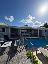 Two minutes from the magnificent Friar's Bay beach, it has everything you need for an unforgettable vacation, with family or friends. It can accommodate up to 8 people, i.e. 6 in the villa in the 3 bedrooms + 2 people in 1 independent studio with increased rate. The studio is of course available at any time with an additional price.