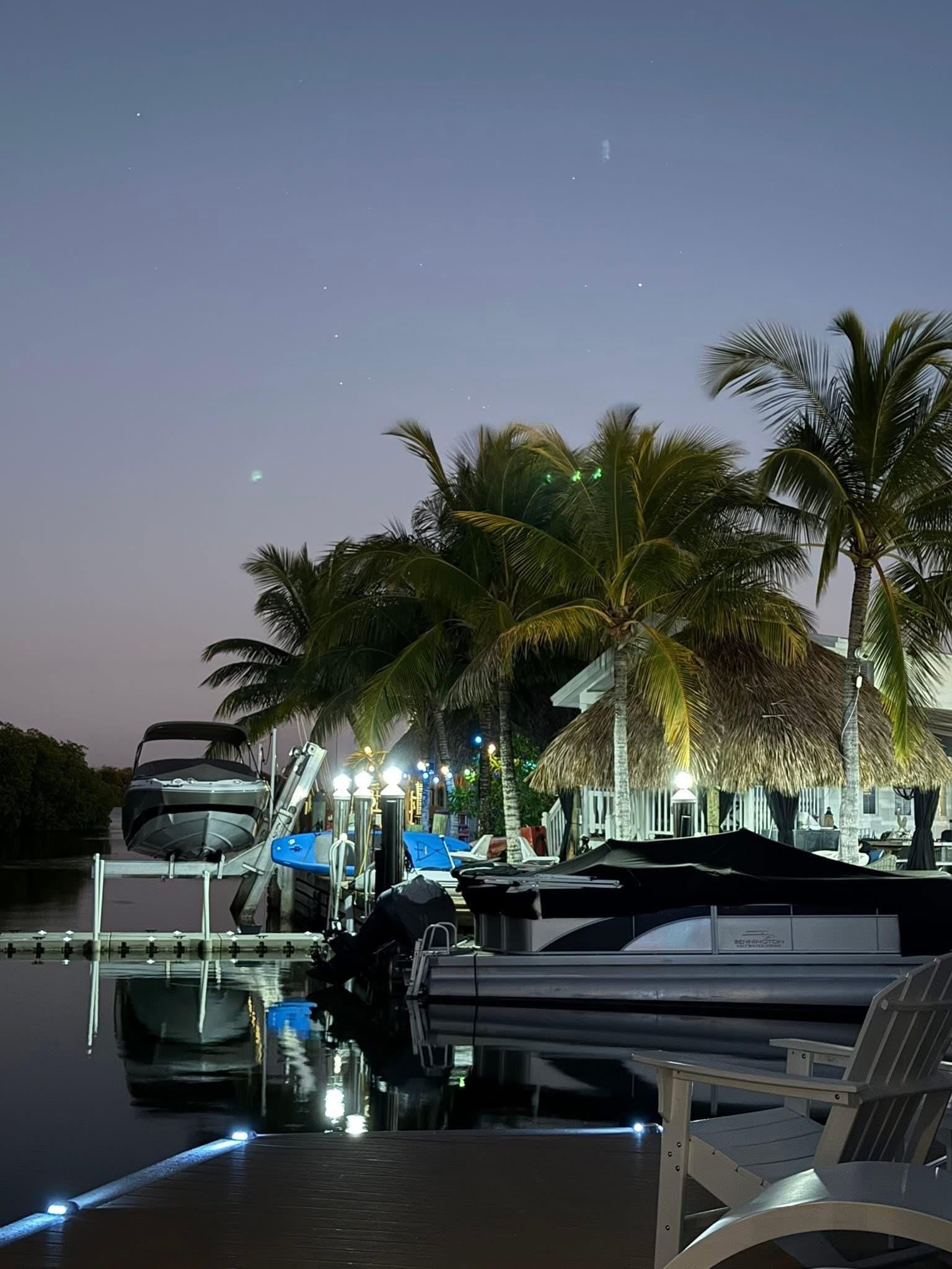 Bring your boat, rent a boat or simply enjoy our two kayaks on the property in this waterfront oasis. Explore the shallow water inlets or the nearby sound and watch for the Manatee or Dolphins which frequent these waters. The property sits across from protected mangroves at the boundary of the Everglades National Park. Private 41ft dock on a deep water canal with a 10k Ibs boat lift. Fish cleaning table and fishing poles included... catch your dinner right from the dock! New underwater fish light creates a visible aquarium off the dock at night attracting bait fish and larger predictory fish. LED dock post lamps, cafe lights in tiki and large LED lamp for evening cookouts. Easy access to Manatee Bay and Barnes Sound, less than 30 minutes from open ocean. 3 beach areas within 5 minute boat ride. Tiki hut with fan/charcoal BBQ, TV and bar seating. Washer and Dryer in unit.