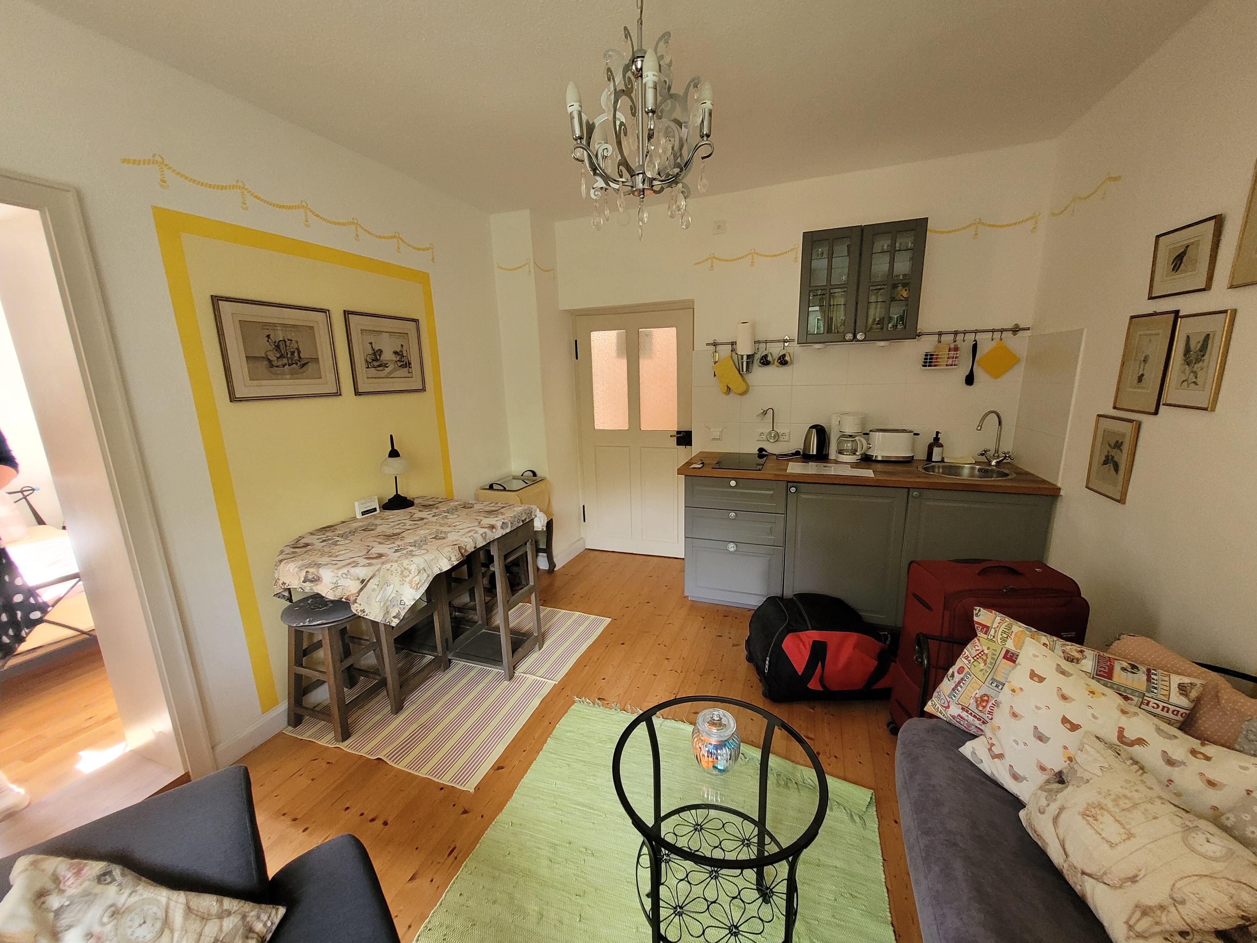 The one bedroom apartment, located in the rear of the building on the ground floor, can also be the Holiday "Himmelblau" booked together on the first floor so that you have a completed holiday home available.
