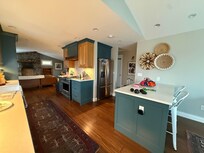KITCHEN AND DINING: A wonderful kitchen fully stocked with all you might imagine needing for prepping a simple or complicated meal. The dining table seats 8 easily with a leaf for additional seating. There is also an island with seating for 3 more.