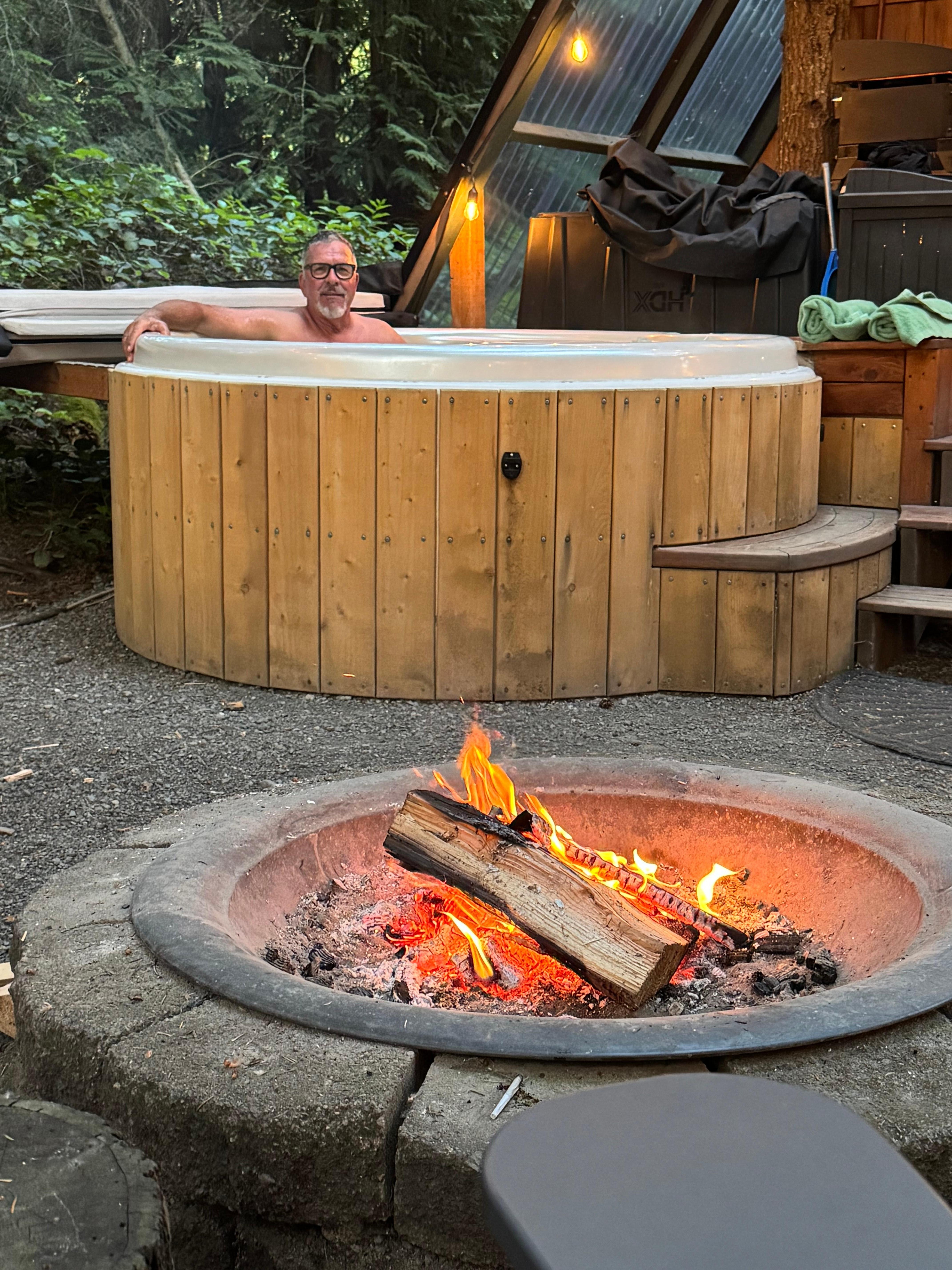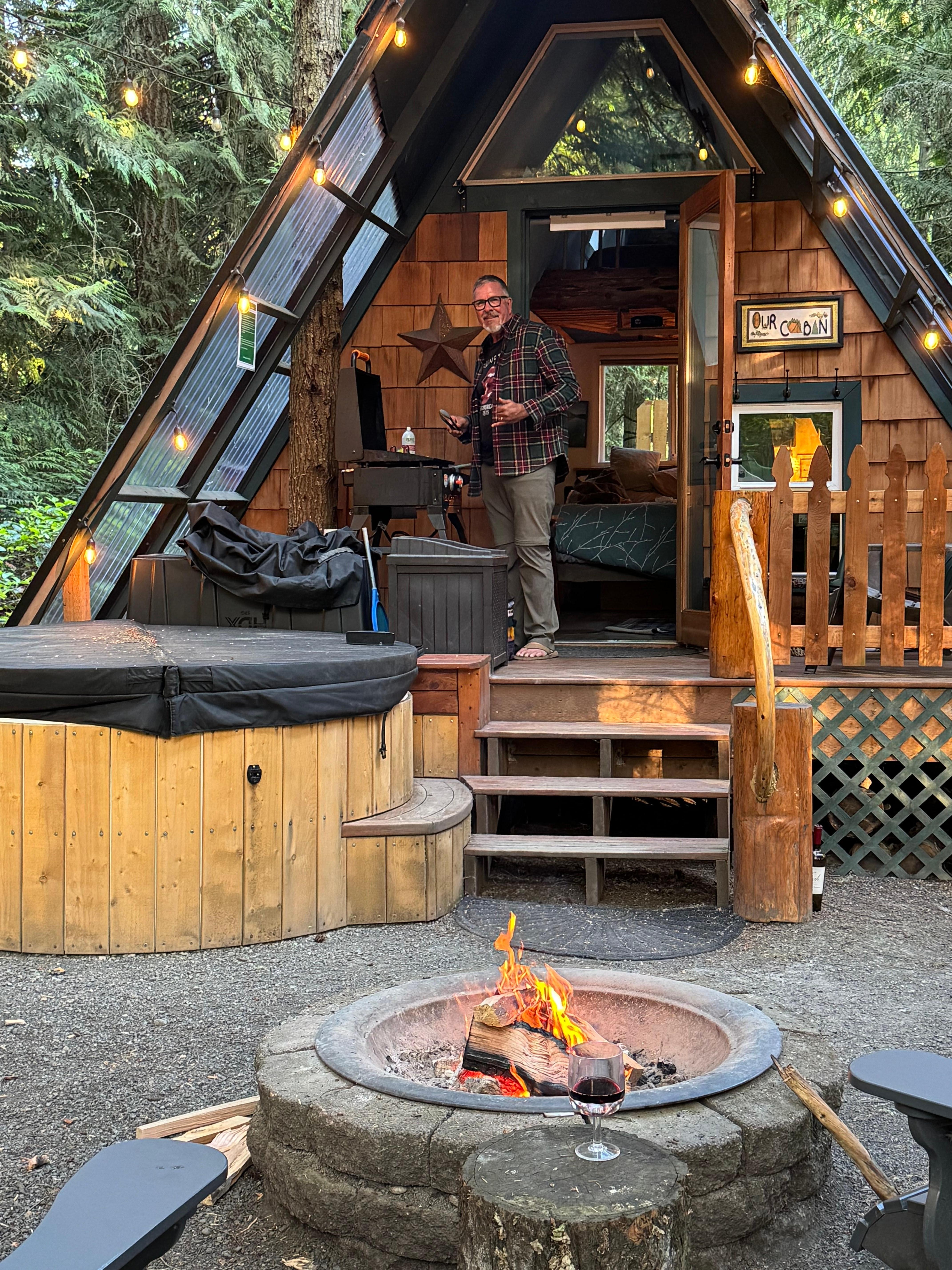 While this is near to our home on 1.5 acres, our A-Frame resides in its own little nook in the trees. We share a driveway, but you will have your own parking spot with just a short walk to the A-Frame. Outside you can enjoy your deck, hot tub, fire pit, hammock, chicken coop, or walk down the private road.